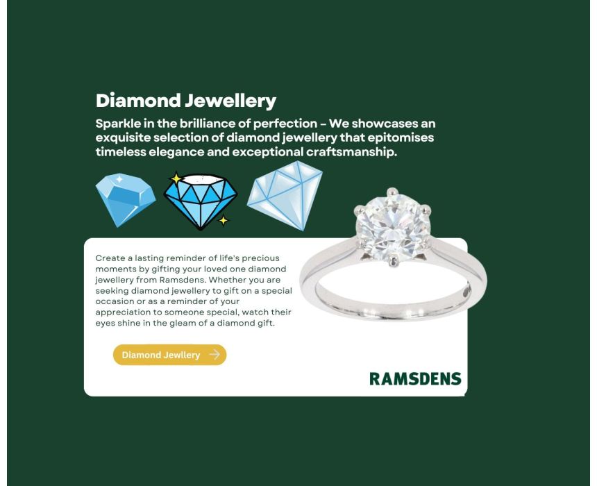 We are happy to provide a Ramsdens diamond grading report for any of our diamonds over 0.30ct. Due to our diamonds being within a setting there are certain limitations to the grading, please see our grading terms and conditions for further information and note that any diamond with a lesser colour than L will be referred to as ‘Tinted’ due to the setting limitations.