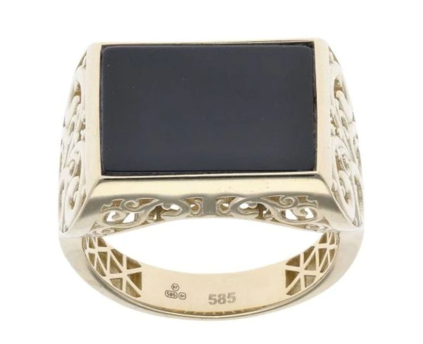 One excellent choice is this 14ct Yellow Gold Signet Ring featuring a striking black gemstone. With elegant caged scroll shoulders and a smooth band, it combines traditional signet styling with a bold, modern touch. Crafted from 14ct yellow gold, it offers a timeless appeal while the black gemstone adds distinctive contrast, making it suitable for both everyday wear and formal occasions. Available in a range of sizes including S, T, and X, this ring is priced at £445 and can be viewed online here.