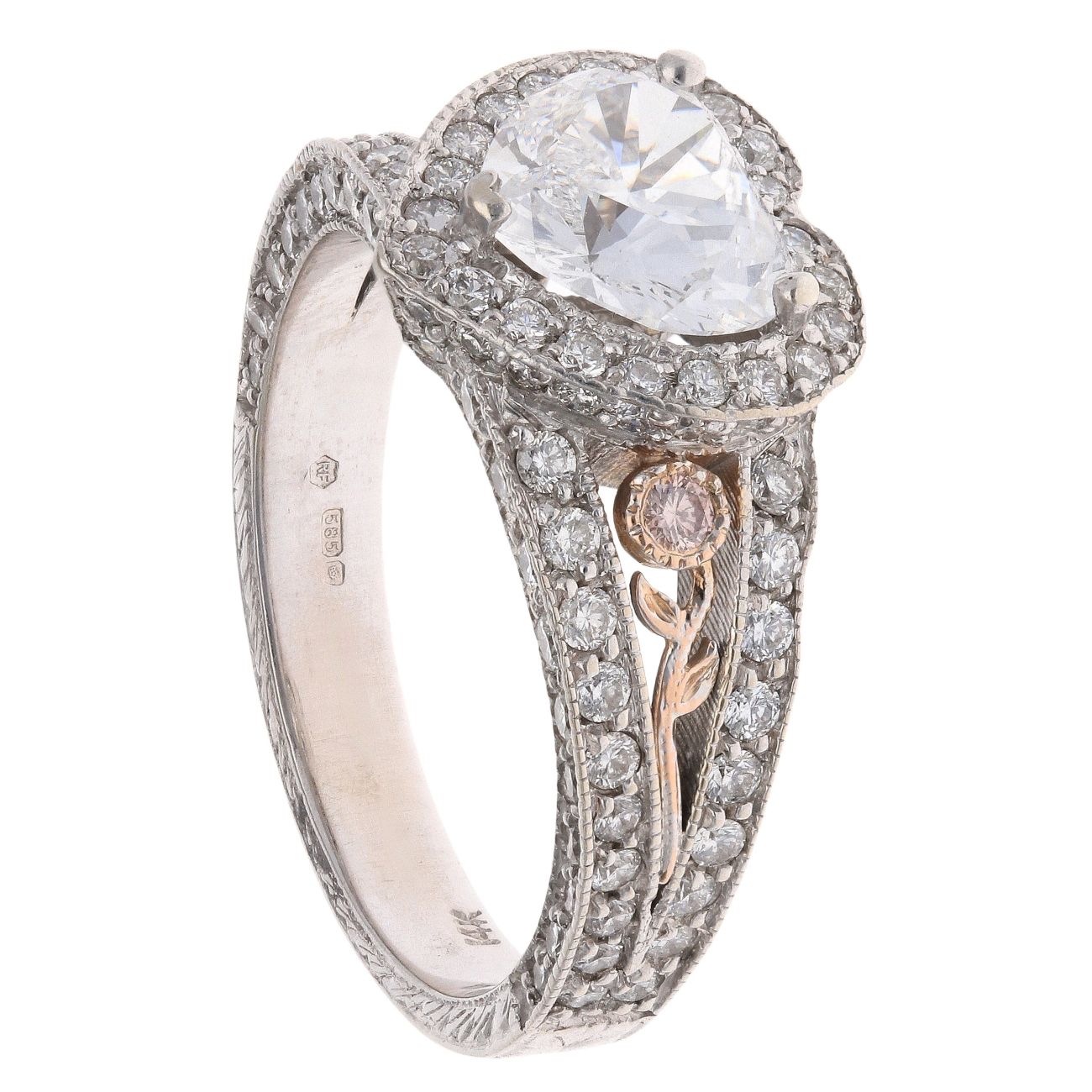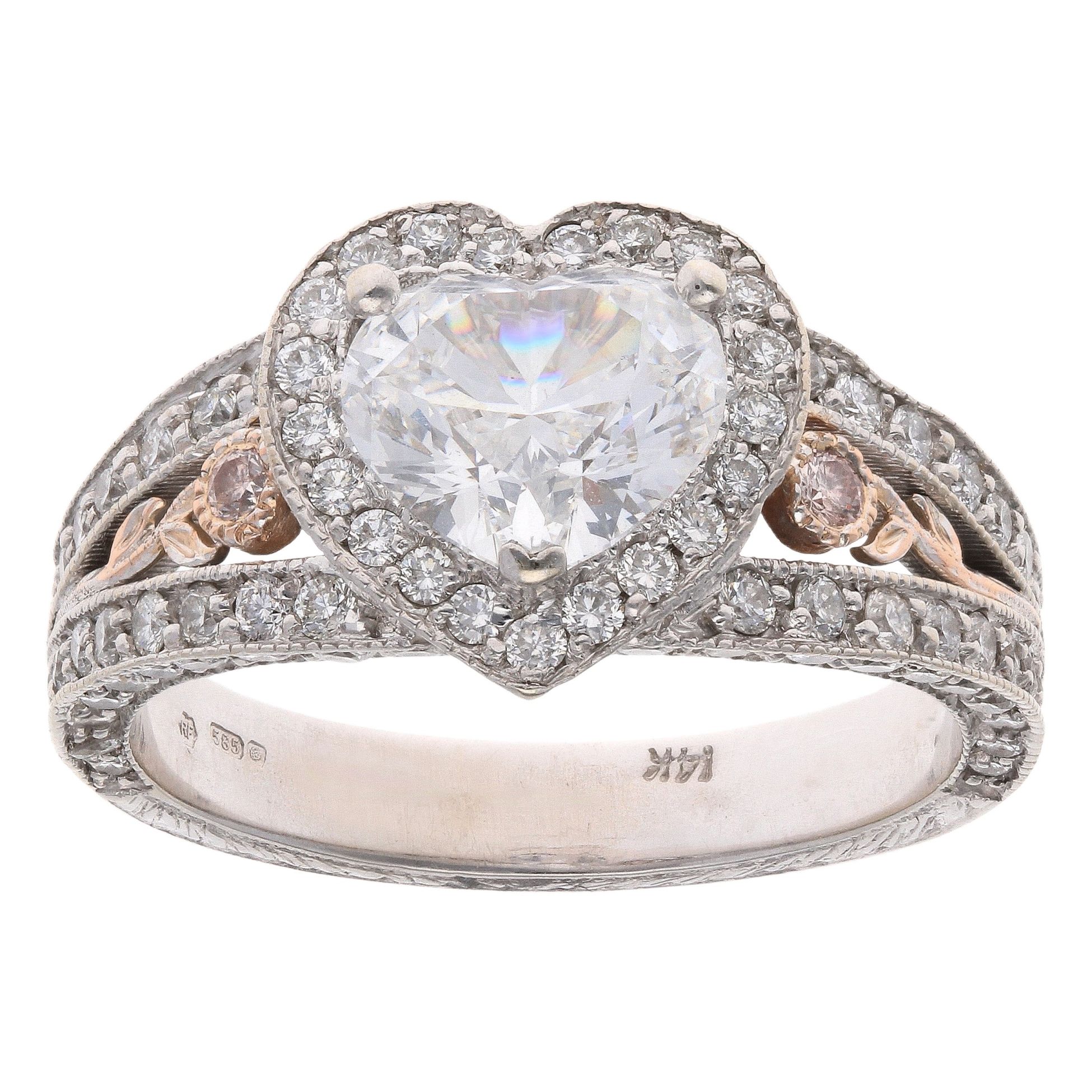 14ct White And Rose Gold 3.00ct Heart And Brilliant Cut Diamond Cluster Ring