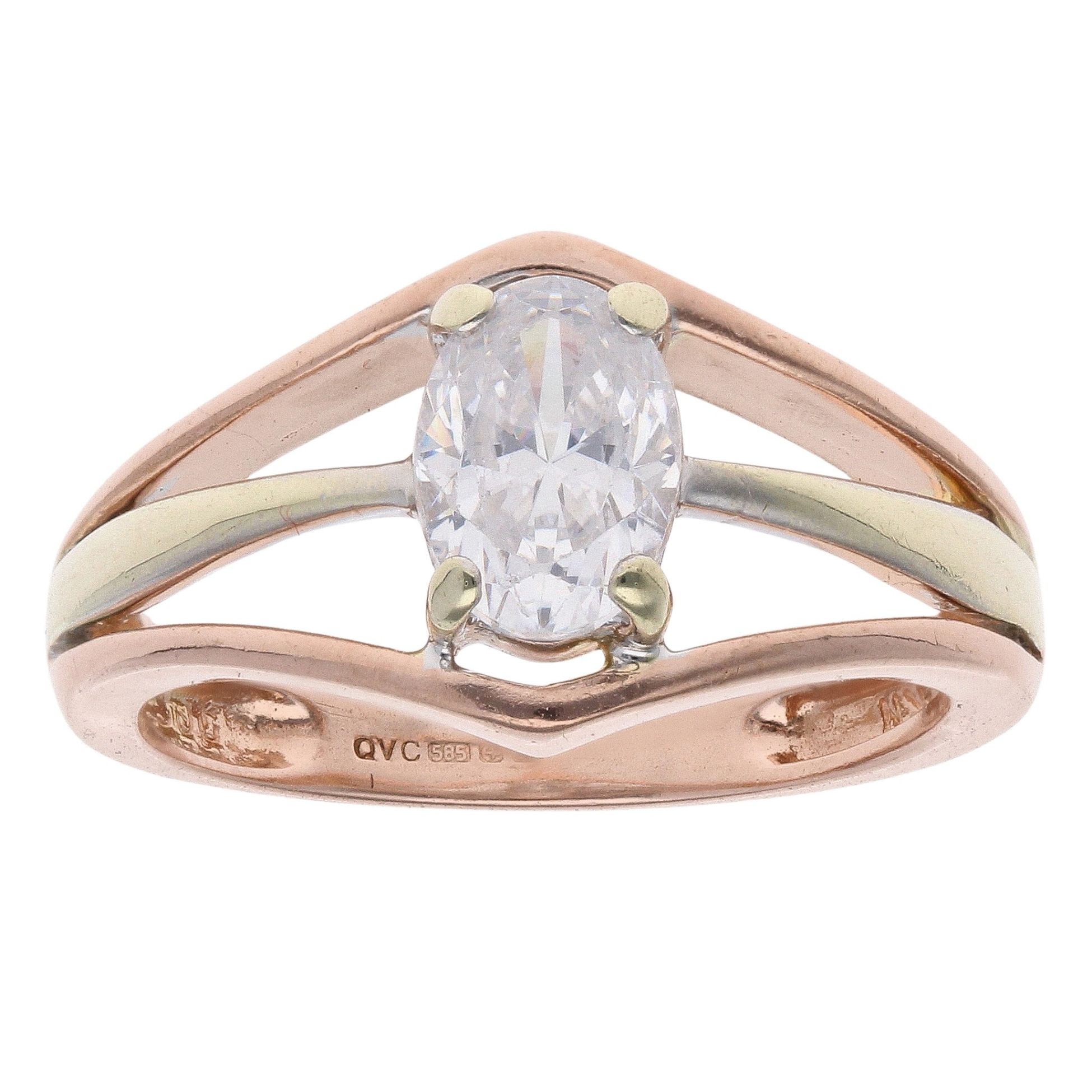 14ct White And Rose Gold Cubic Zirconia Single Stone Ring