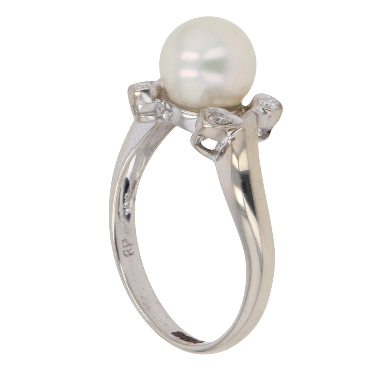 14ct White Gold 0.04ct Diamond And Pearl Ring