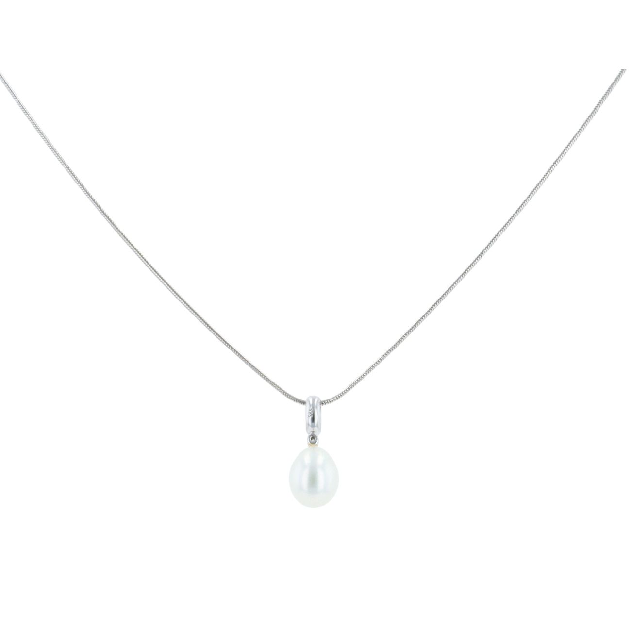 14ct White Gold 0.05ct Diamond and Pearl Solitaire Pendant and Chain 16"