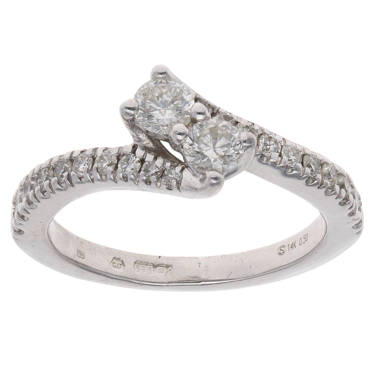 14ct White Gold 0.50ct Brilliant Cut Diamond Two Stone Twist Ring