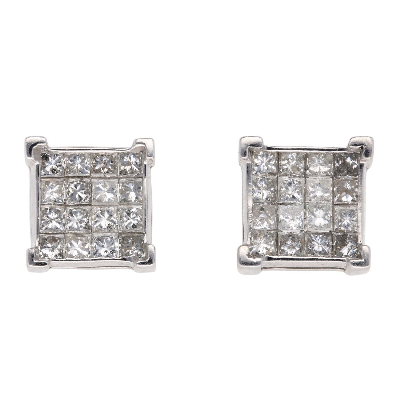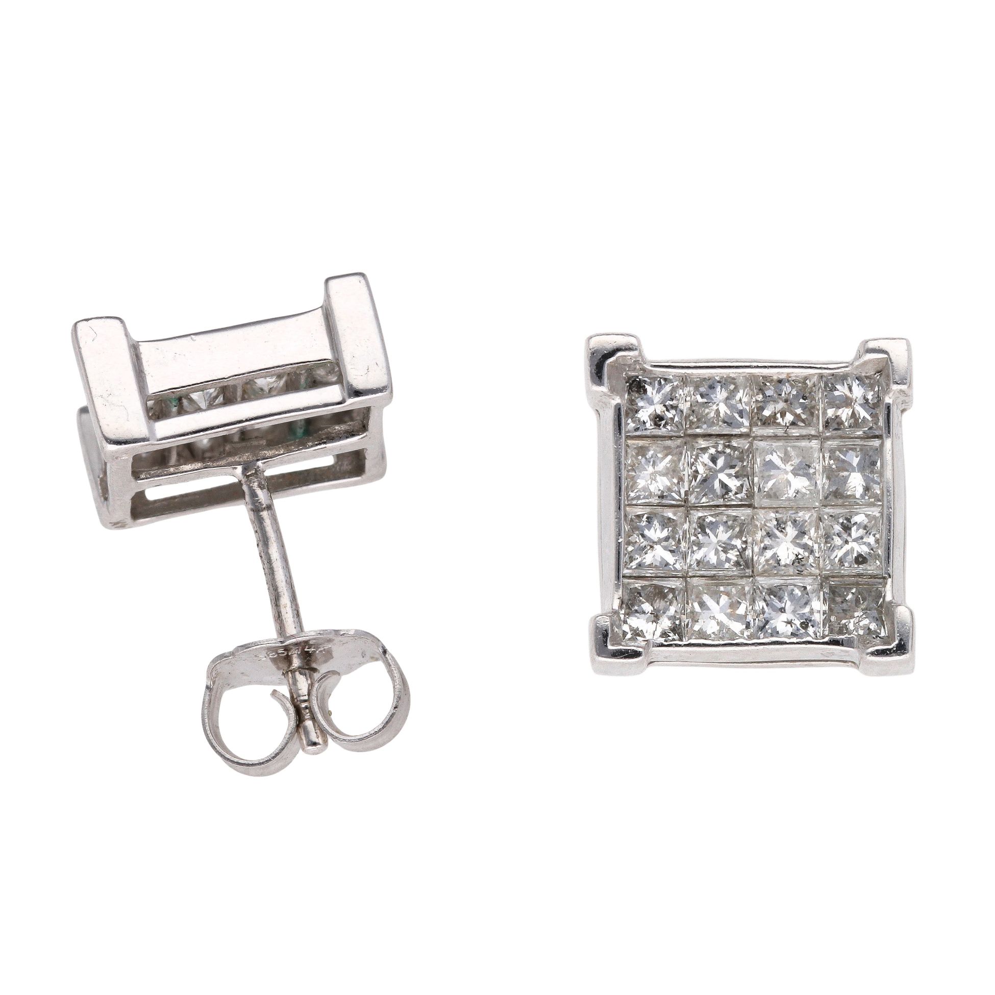 14ct White Gold 1.40ct Princess Cut Diamond Cluster Stud Earrings