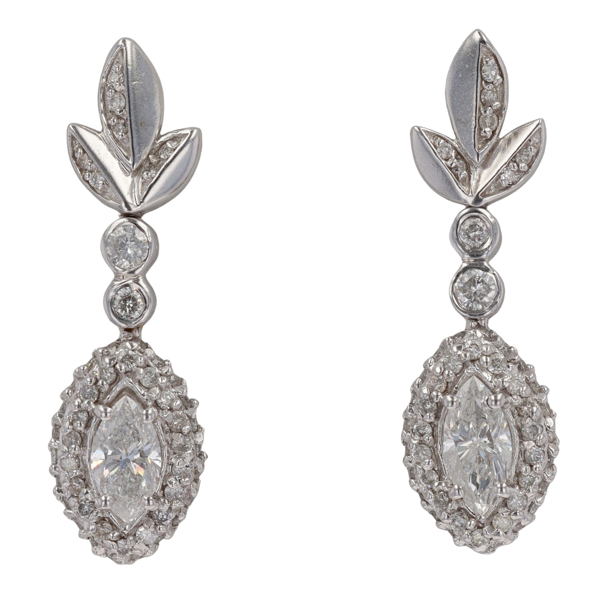 14ct White Gold 1.50ct Marquise and Brilliant Cut Diamond Drop Earrings