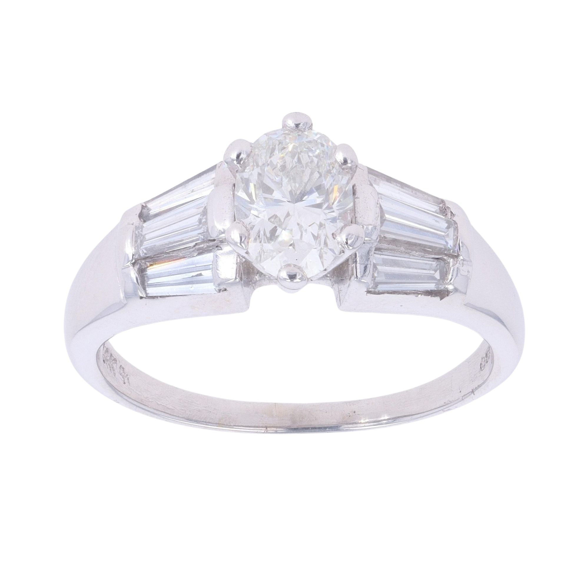 14ct White Gold 2.00ct Oval And Baguette Cut Diamond Solitaire Ring