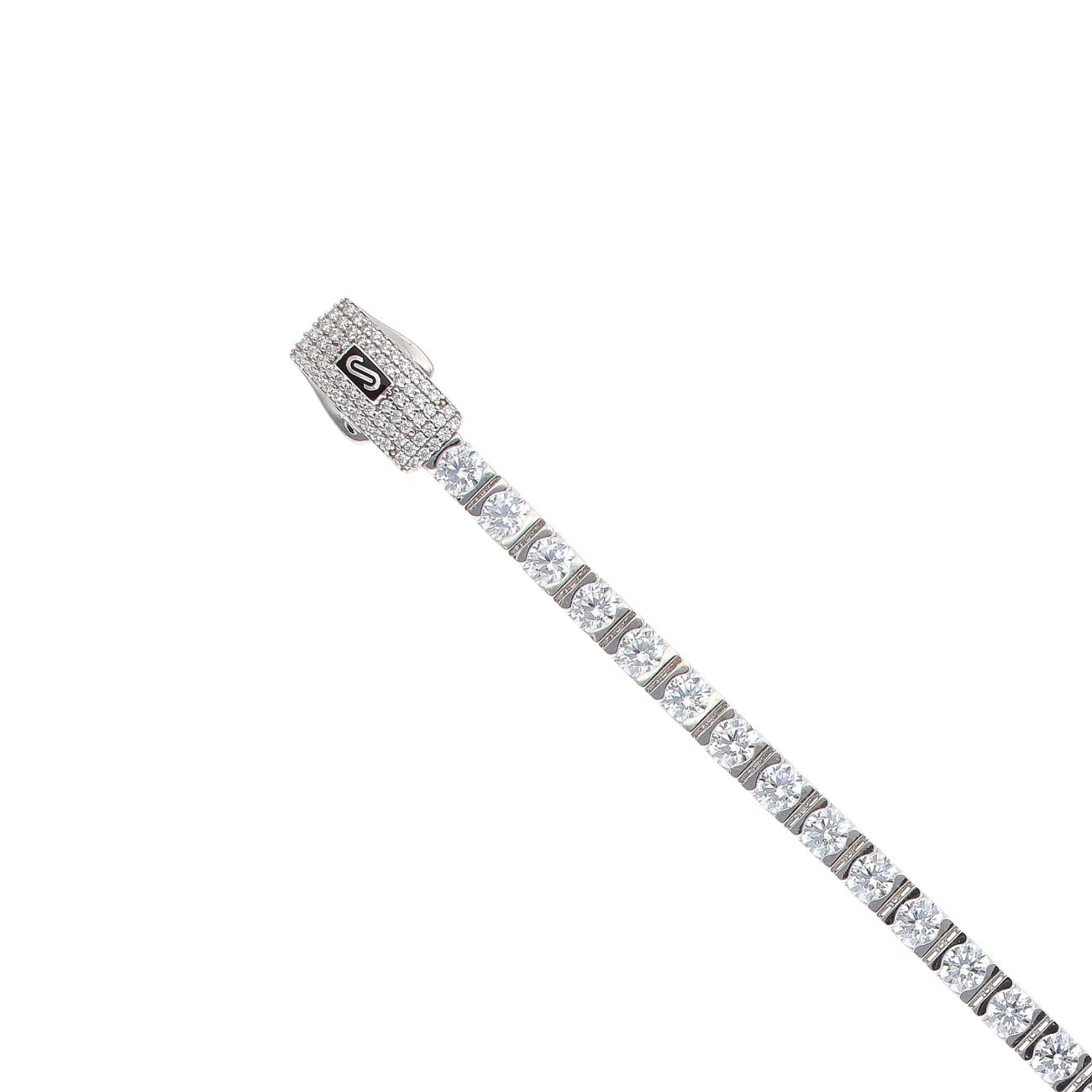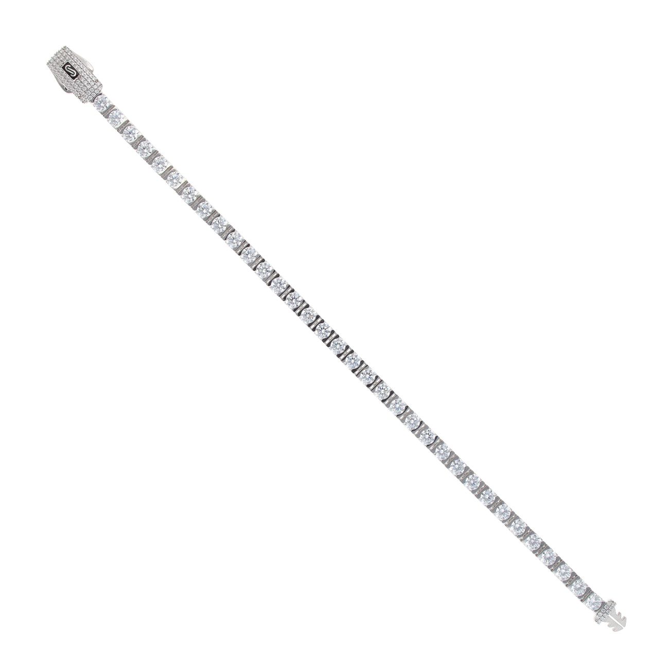 14ct White Gold Monaco Cubic Zirconia Agua Pave Lock Tennis Bracelet 7.5"