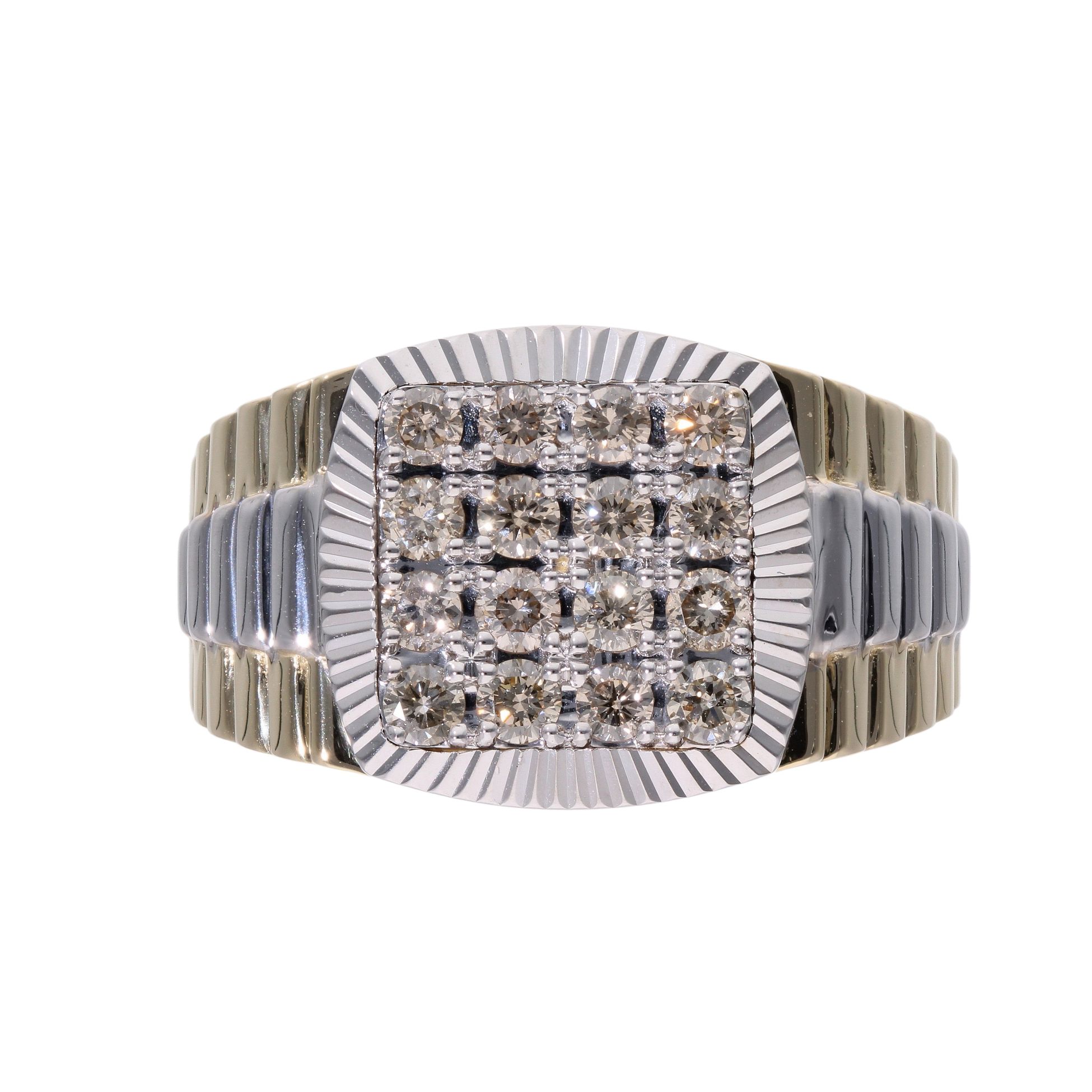14ct Yellow And White Gold Diamond Signet Ring