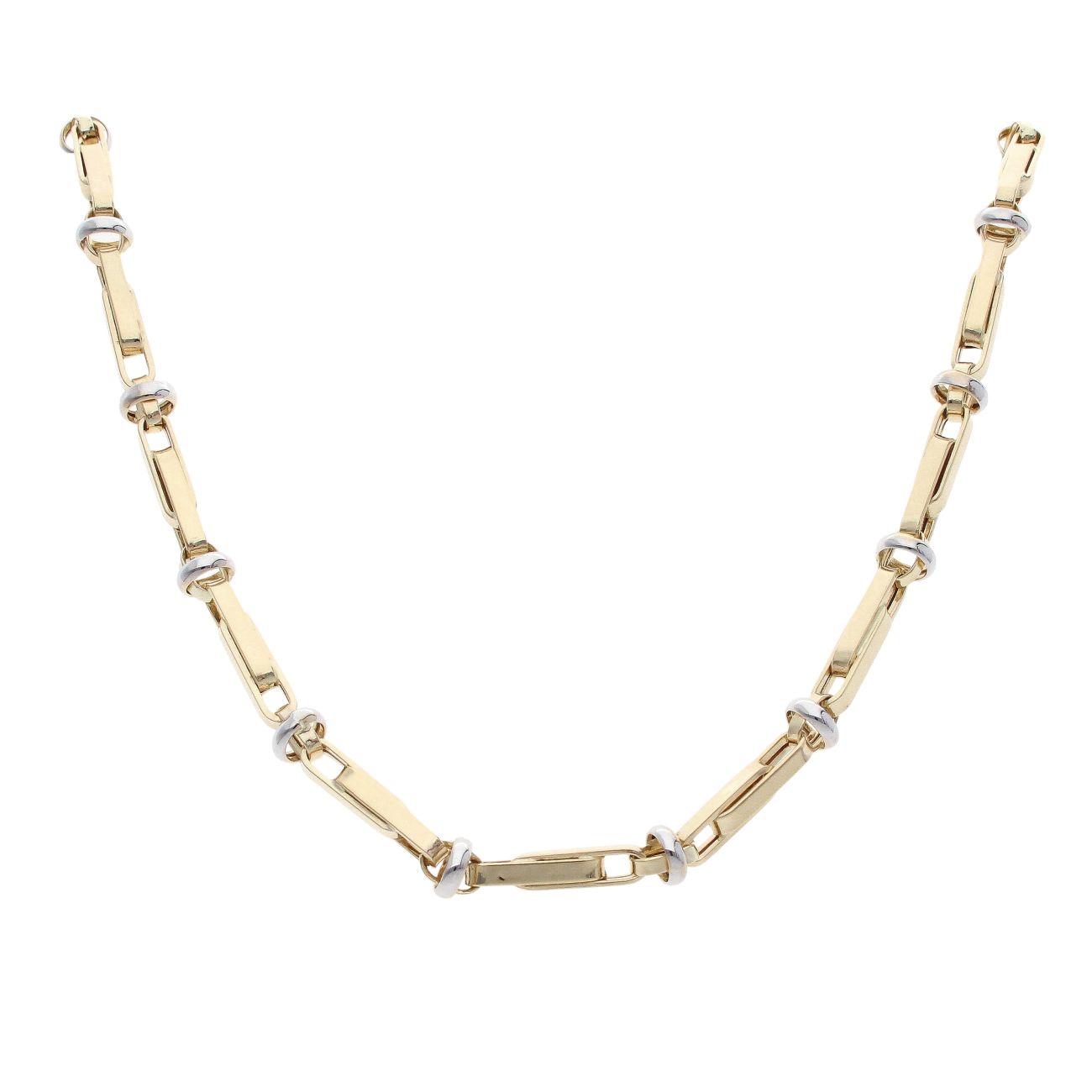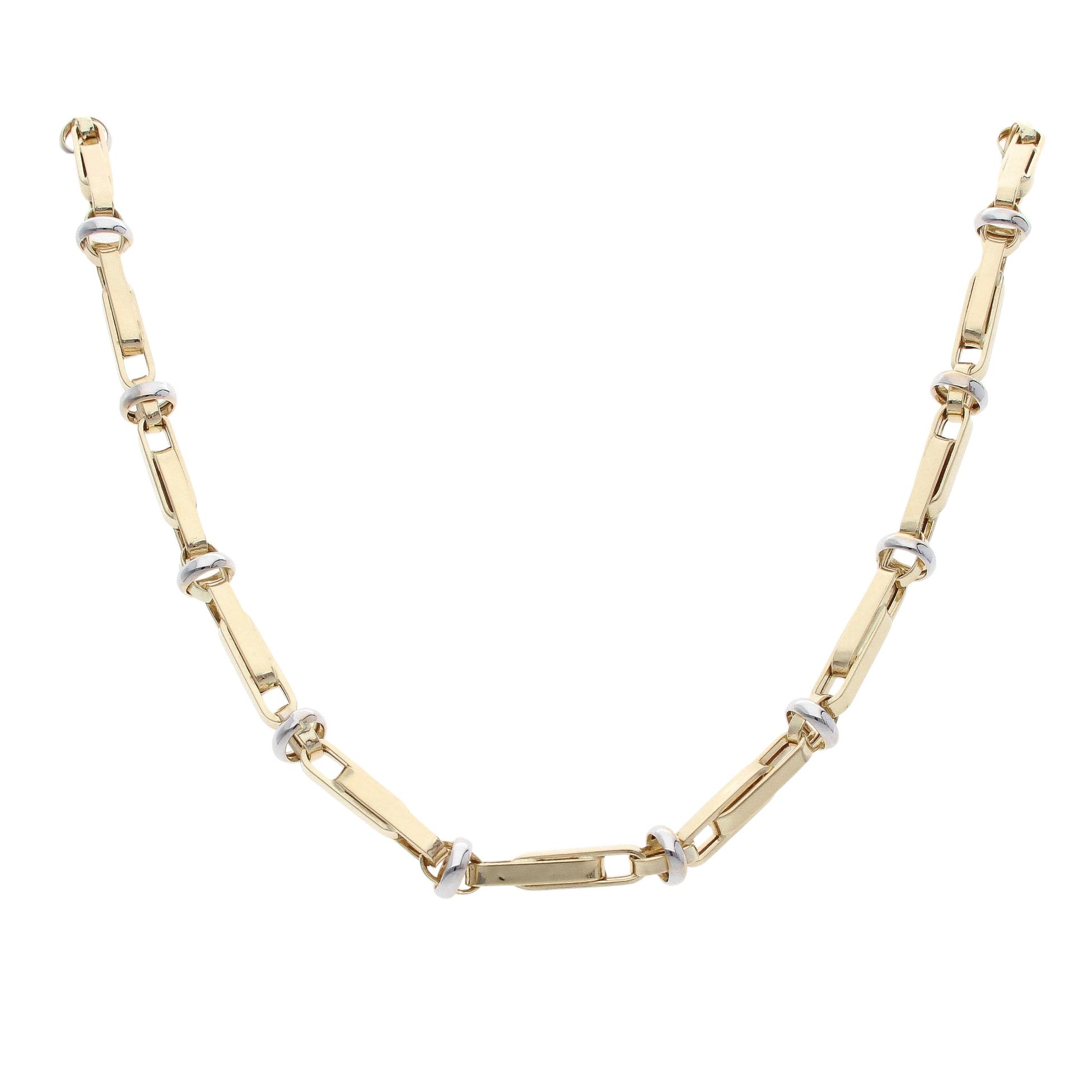 14ct Yellow And White Gold Double Belcher Bar Link Chain 24"