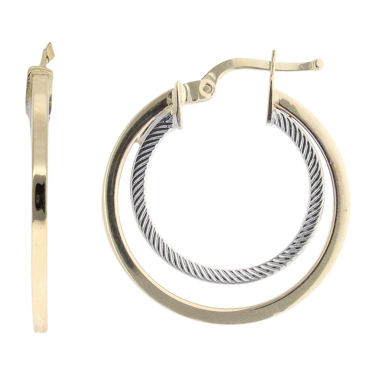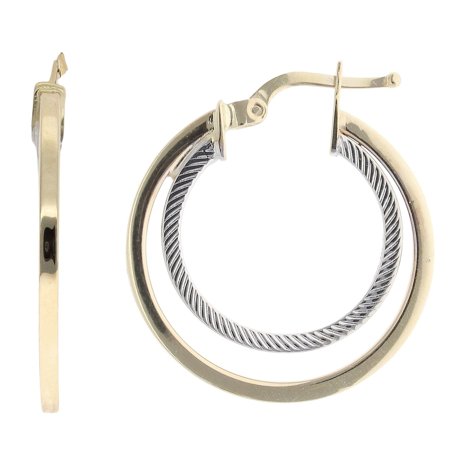 14ct Yellow And White Gold Fancy Hoop Earrings