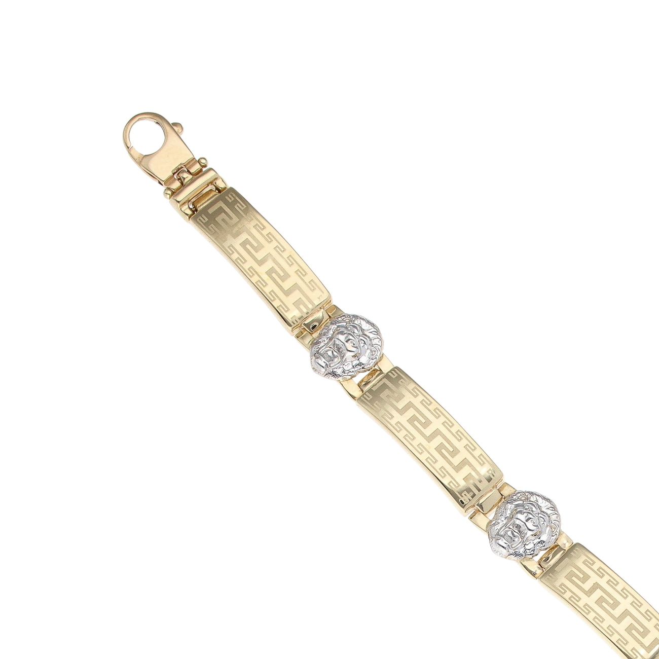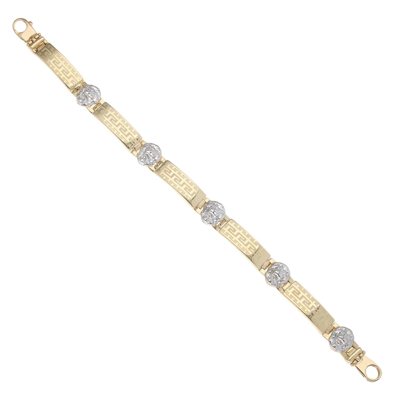 14ct Yellow And White Gold Greek Key And Lion Fancy Bracelet 8"