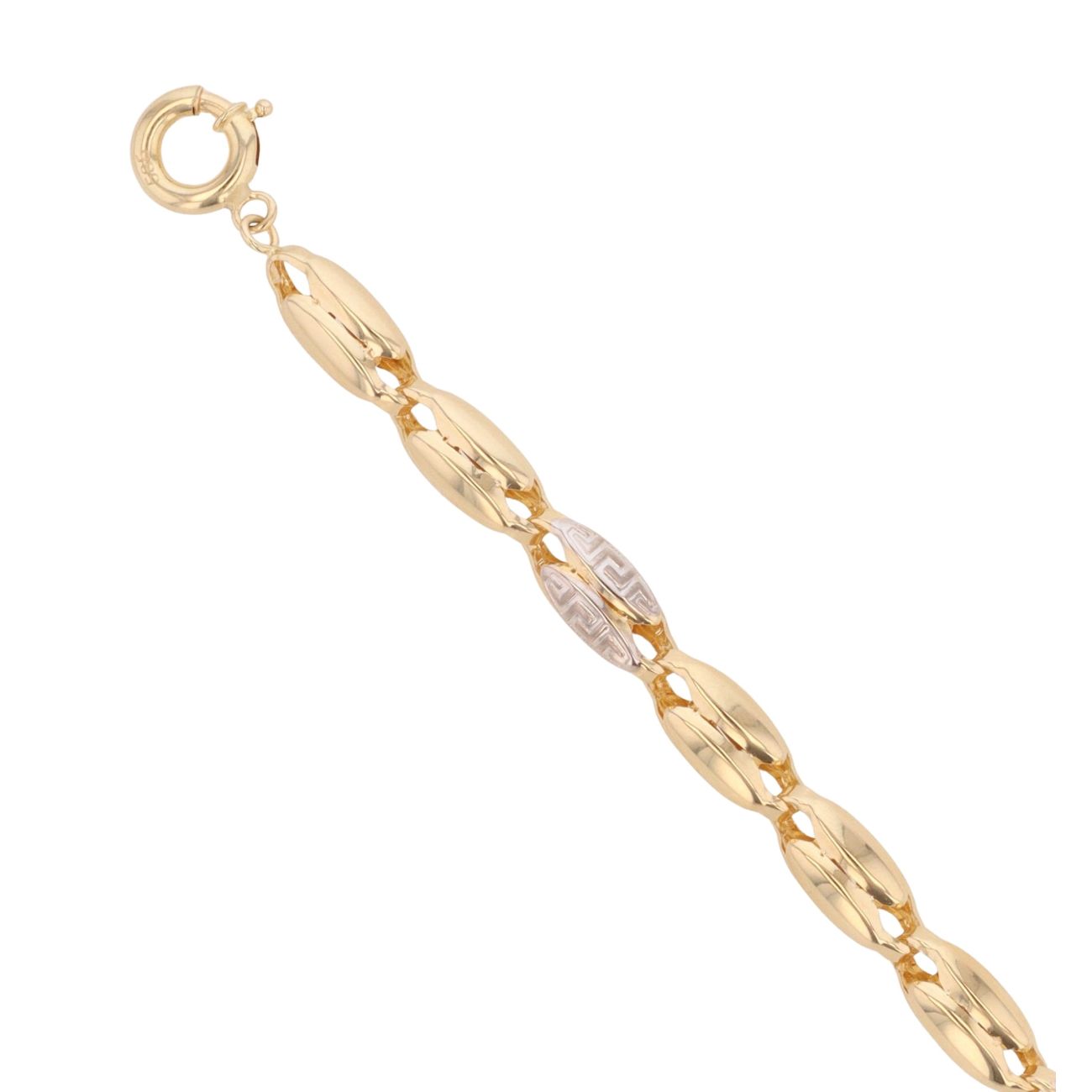 14ct Yellow and White Gold Greek Key Fancy Bracelet 8.5"
