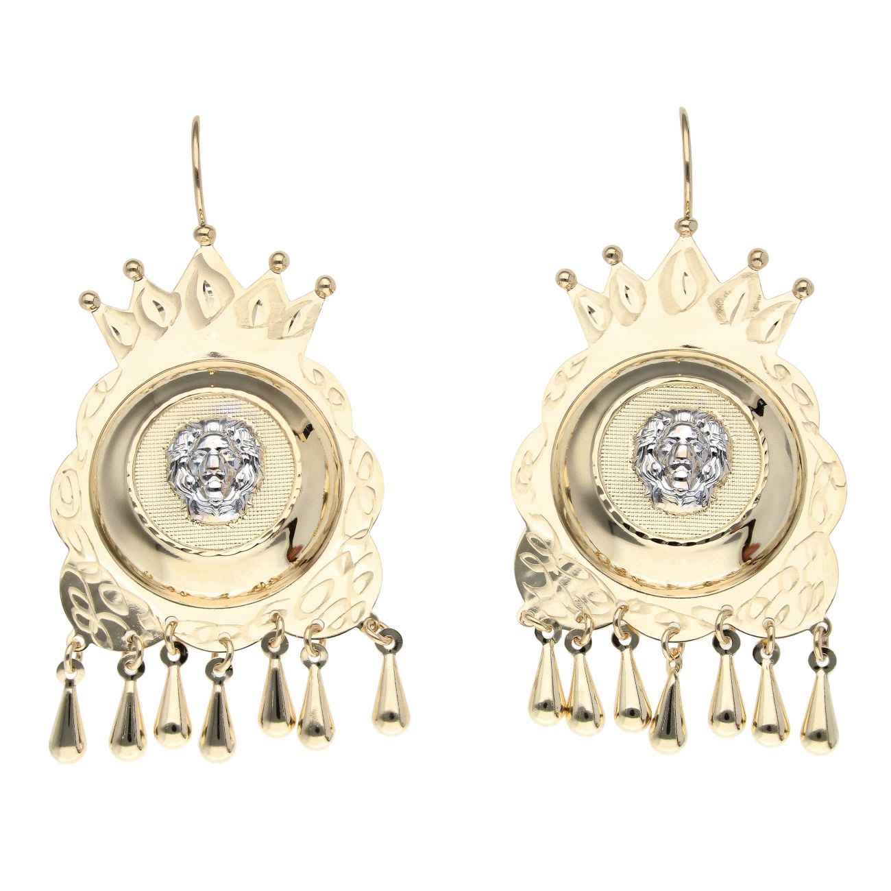 14ct Yellow And White Gold Lion Drop Earrings