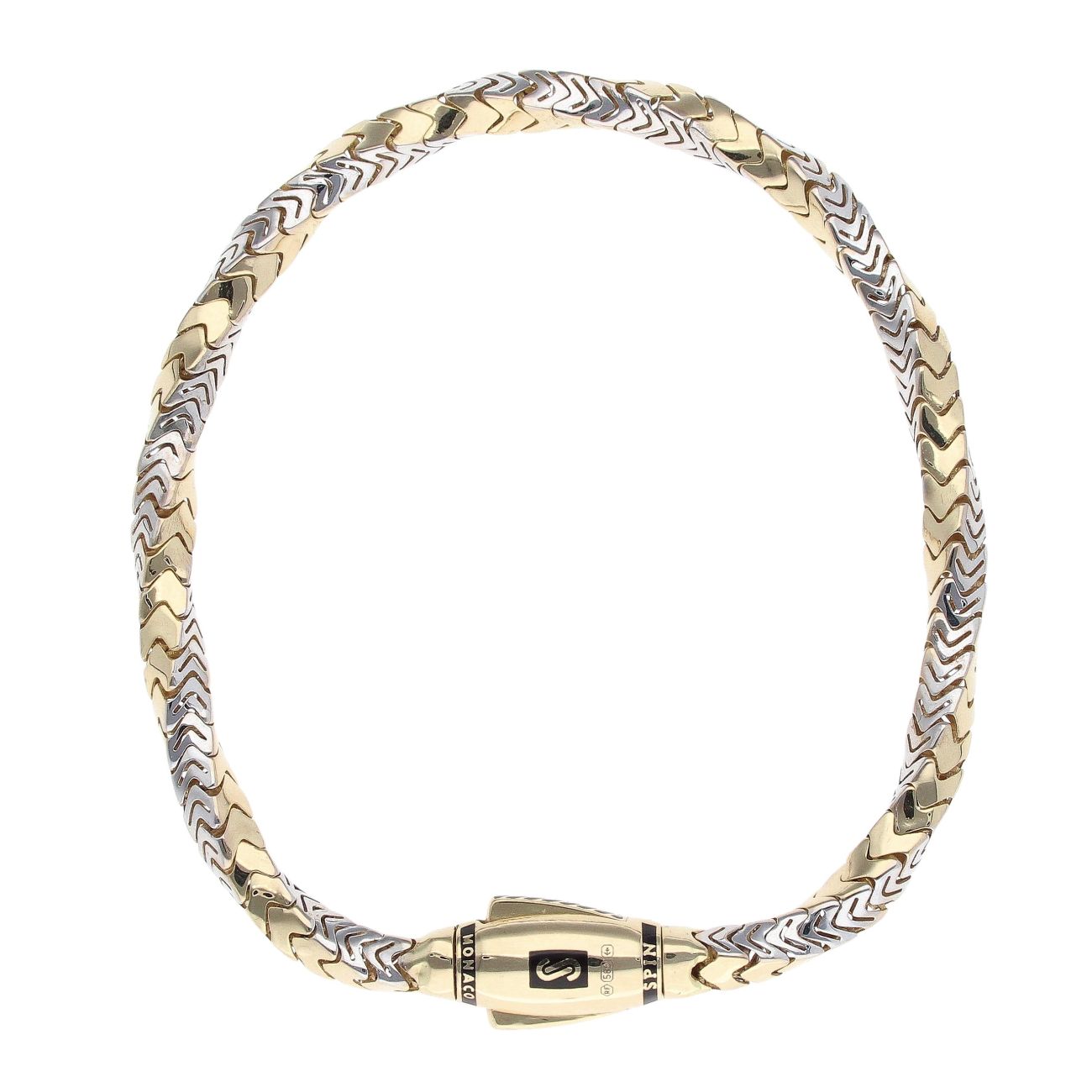 14ct Yellow And White Gold Monaco Spin Plain Lock Twist Bracelet 8"