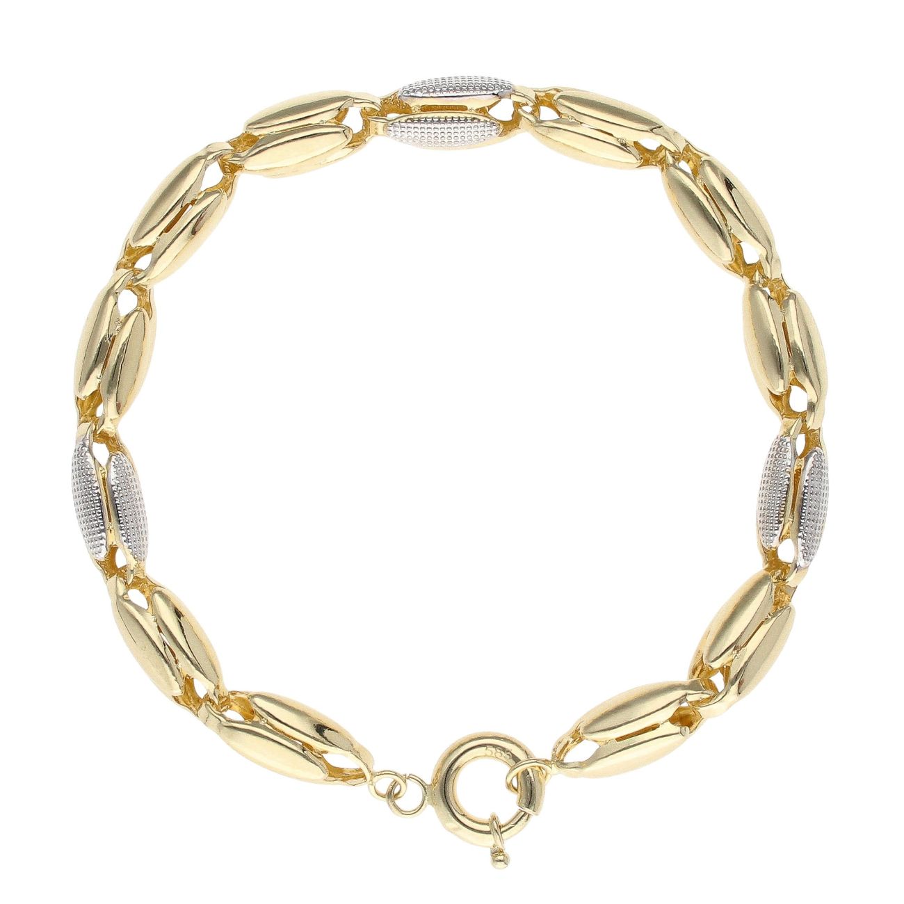14ct Yellow and White Gold Textured Fancy Bracelet 8"
