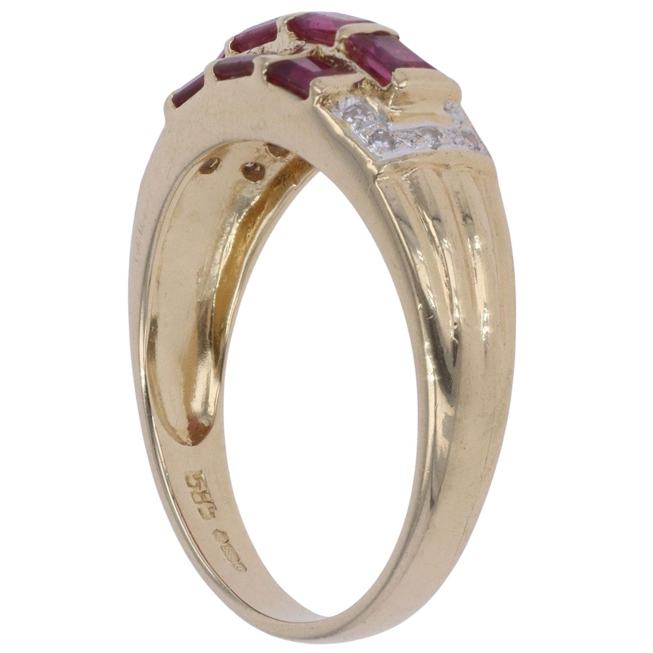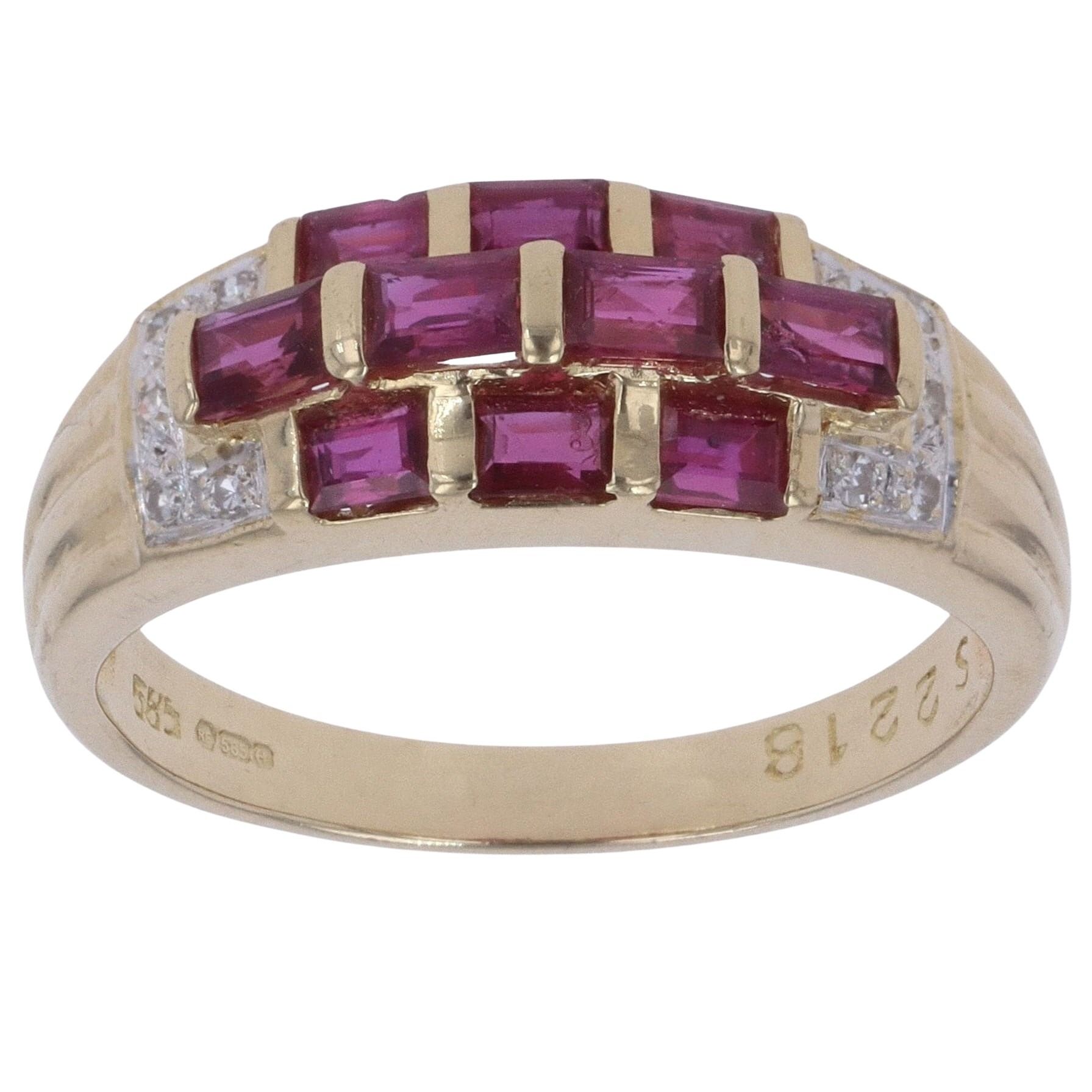 14ct Yellow Gold 0.05ct Diamond and Ruby Fancy Ring