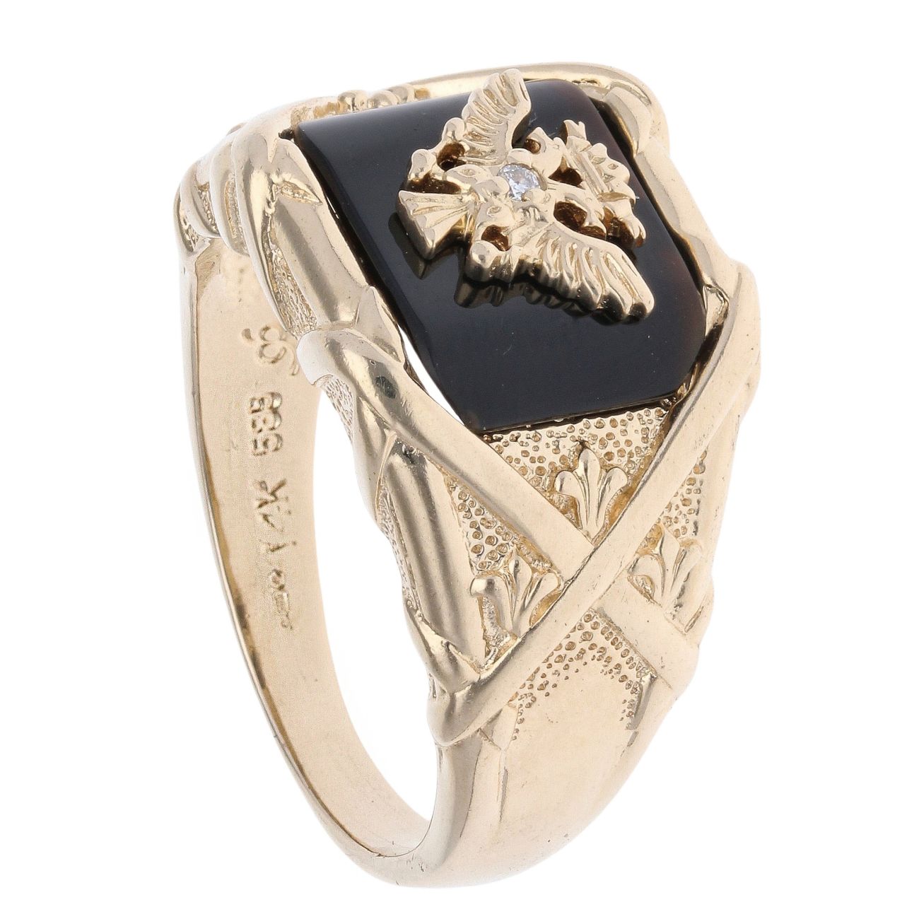 14ct Yellow Gold 0.05ct Diamond Eagle Signet Ring