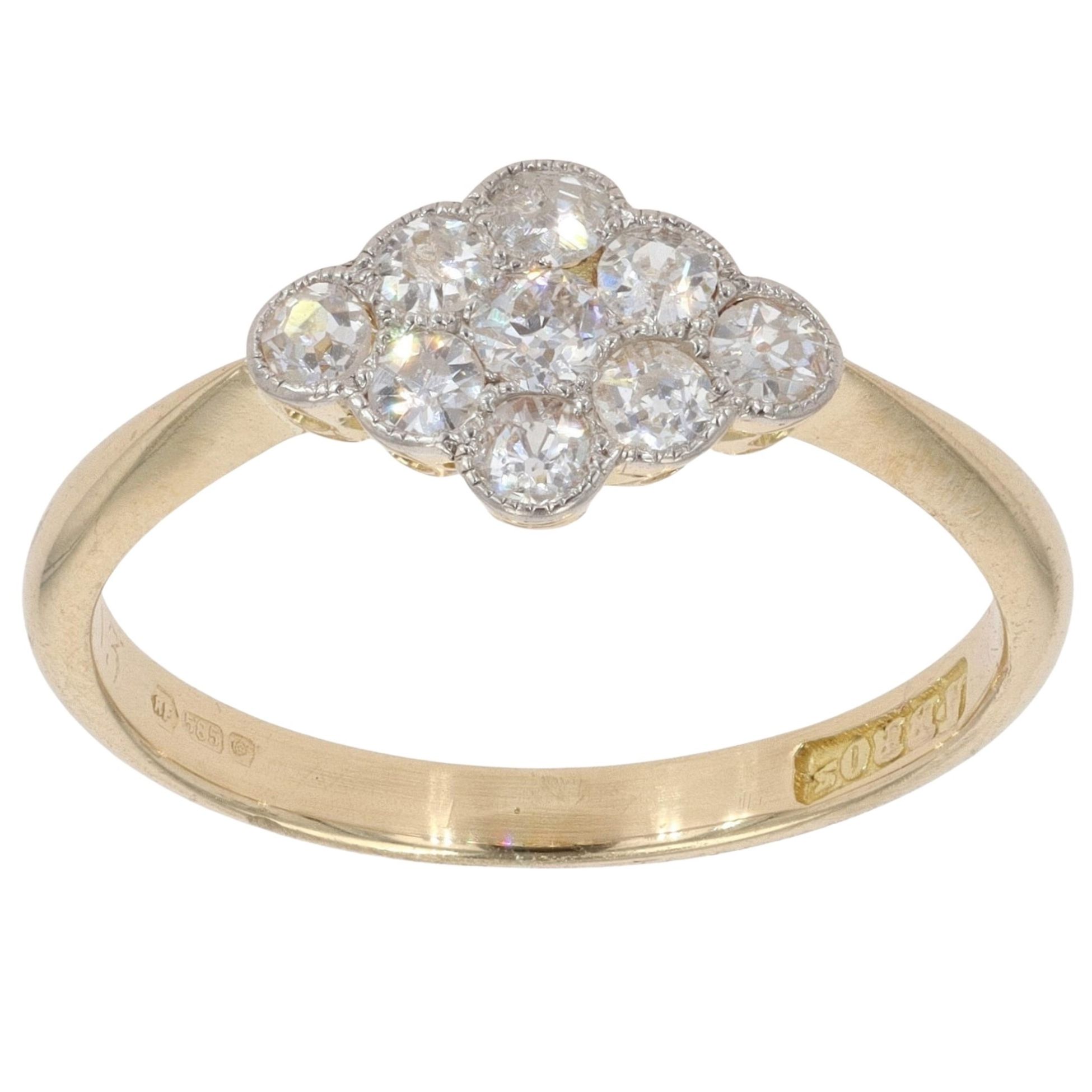 14ct Yellow Gold 0.35ct Brilliant Cut Diamond Cluster Ring