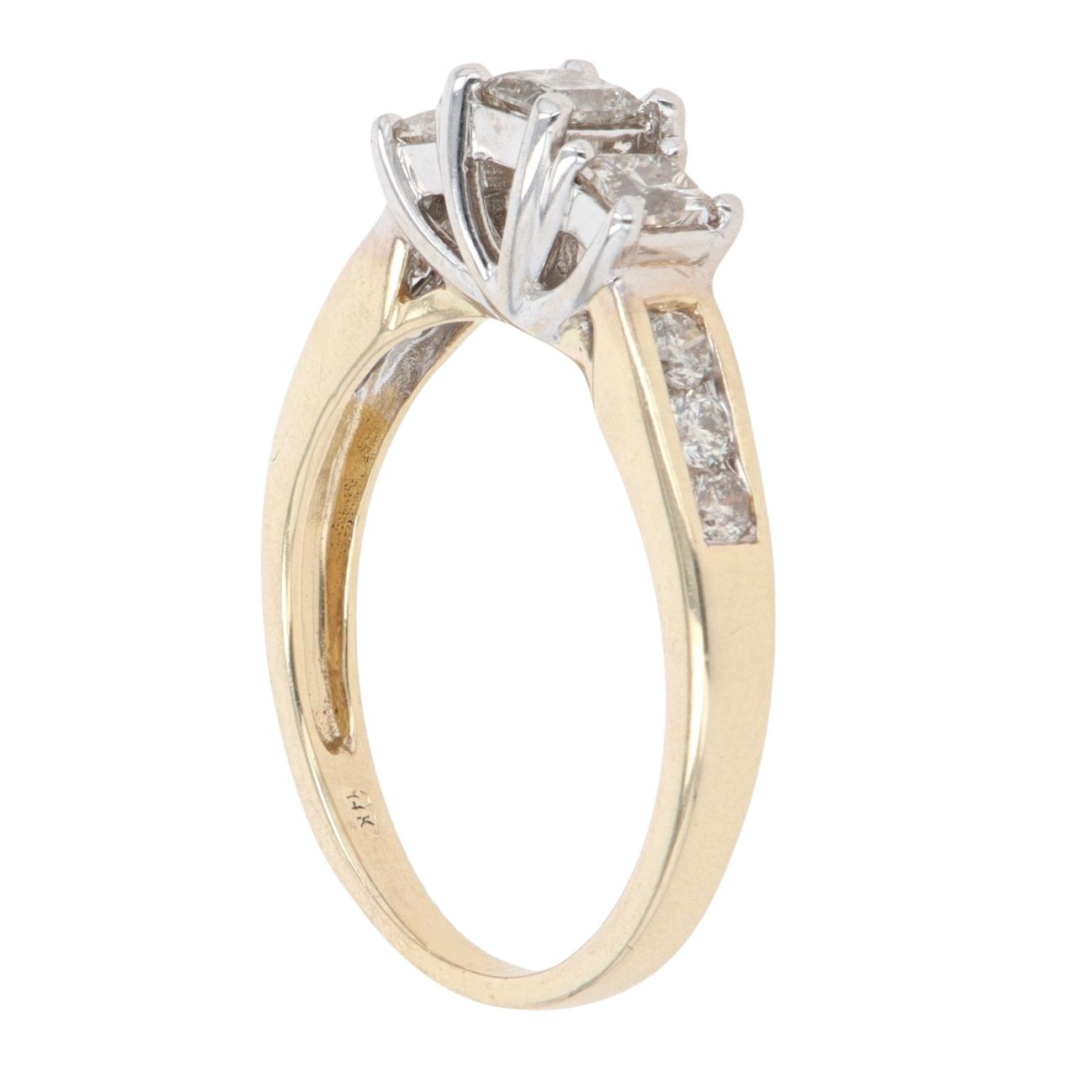 14ct Yellow Gold 1.00ct Princess and Brilliant Cut Diamond Trilogy Ring
