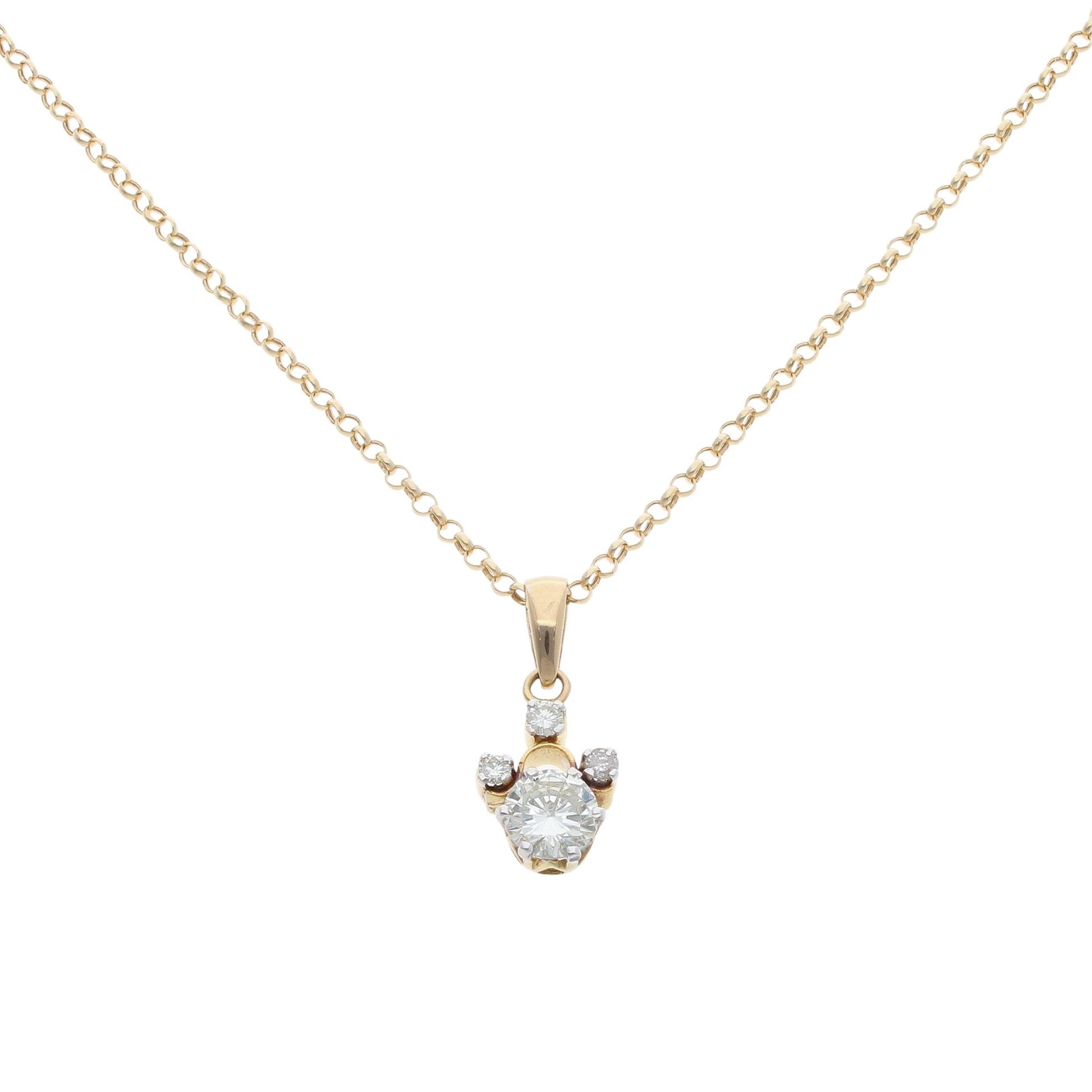 14ct Yellow Gold 1.20ct Brilliant Cut Diamond Pendant And Chain 18"