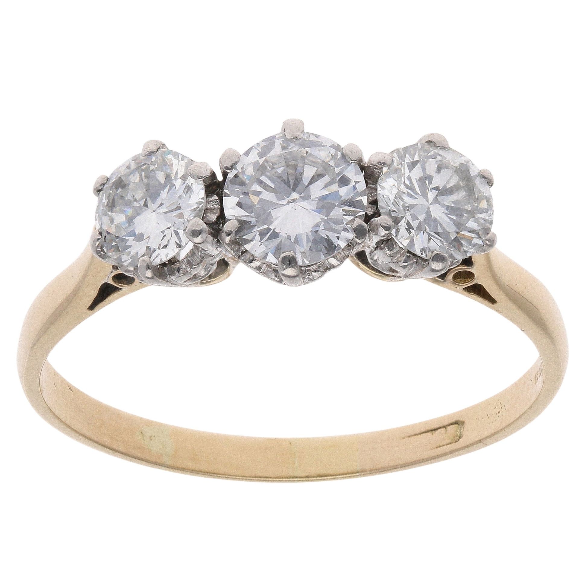 14ct Yellow Gold 1.50ct Brilliant Cut Diamond Trilogy Ring