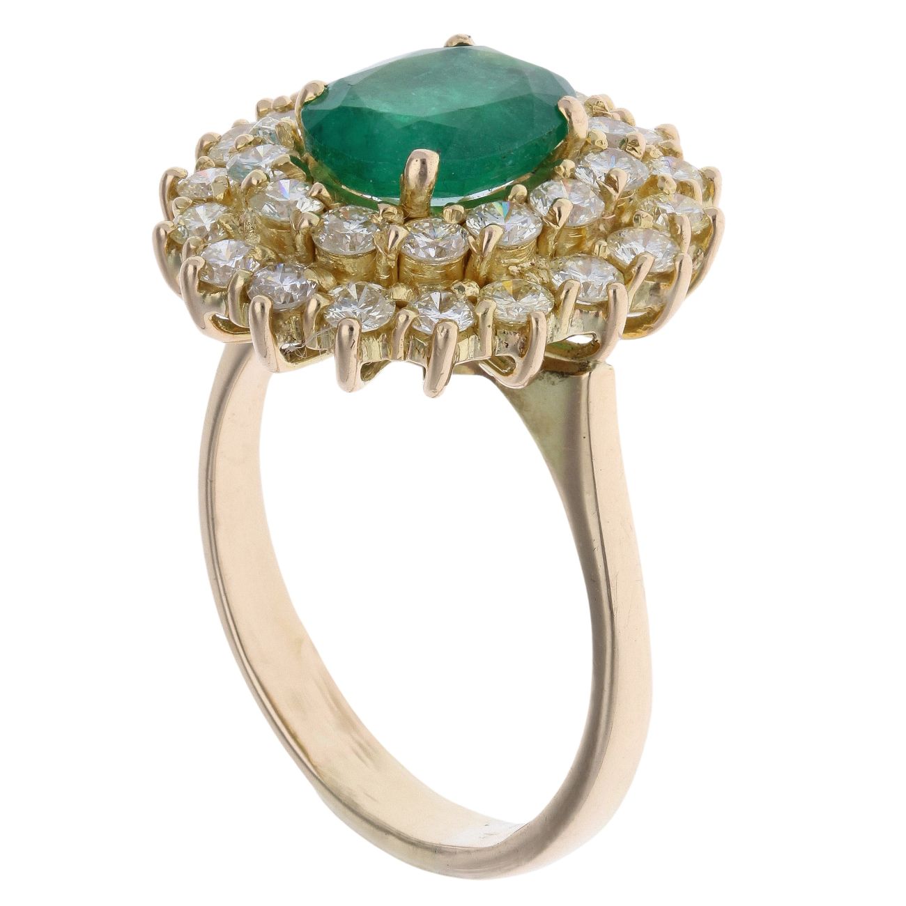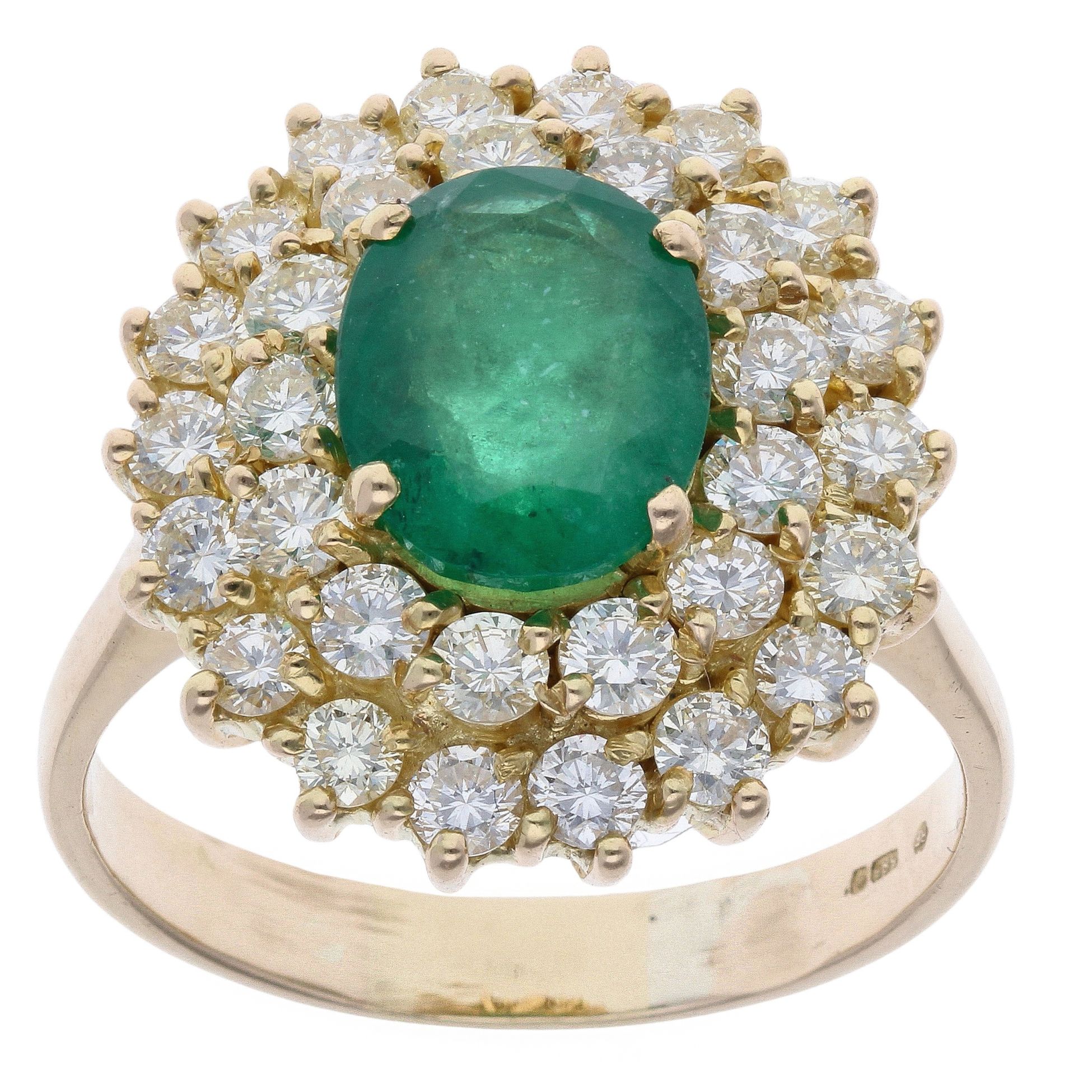 14ct Yellow Gold 2.00ct Diamond And Emerald Cluster Ring