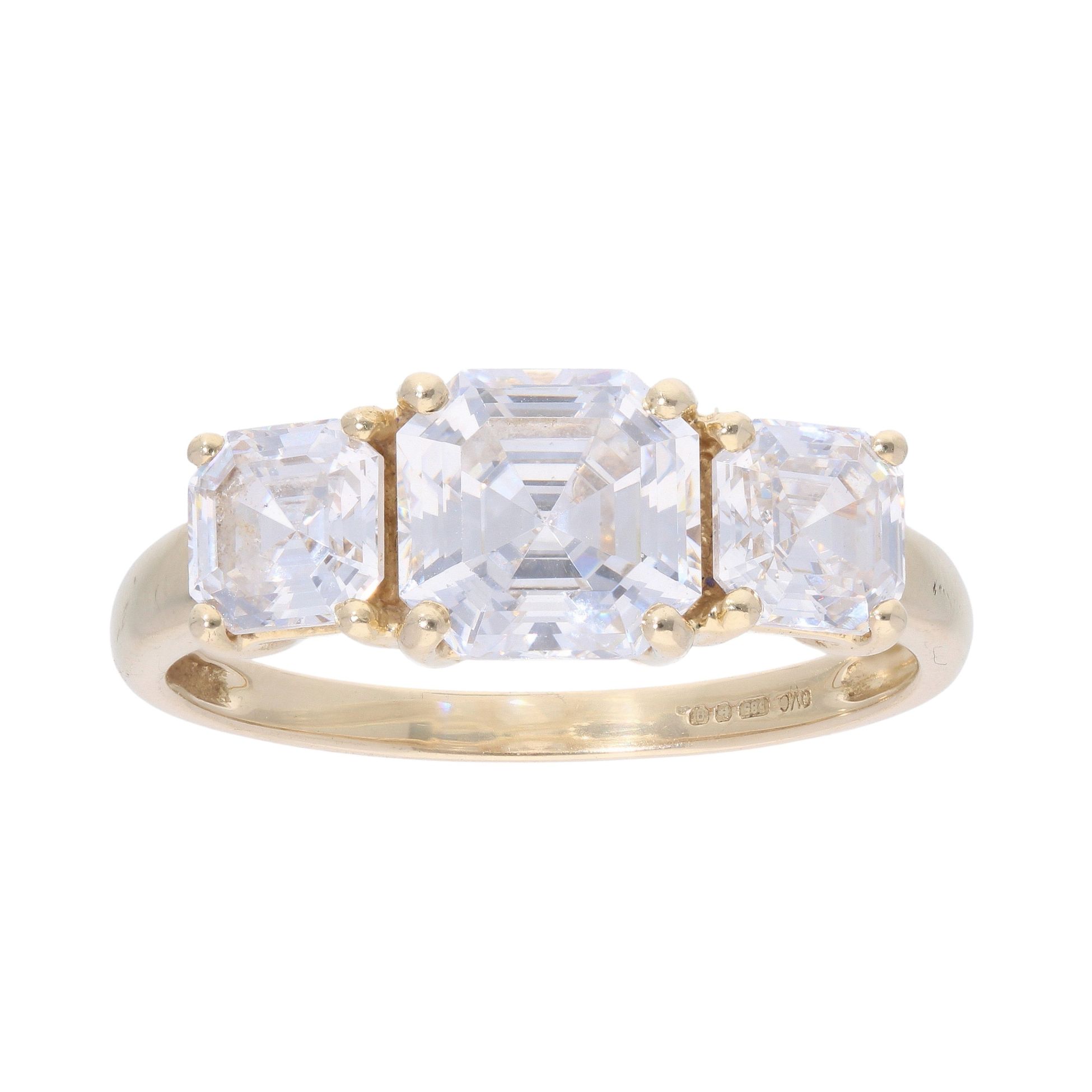 14ct Yellow Gold 3 Stone Cubic Zirconia Ring
