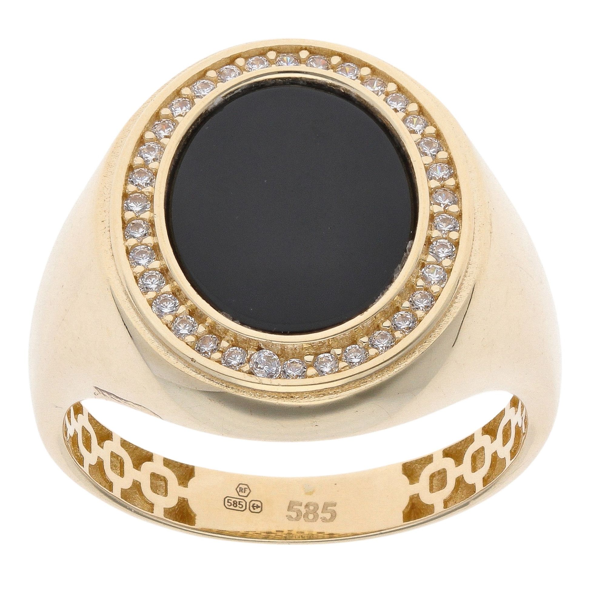 14ct Yellow Gold Black Gemstone and Cubic Zirconia Oval Signet Ring