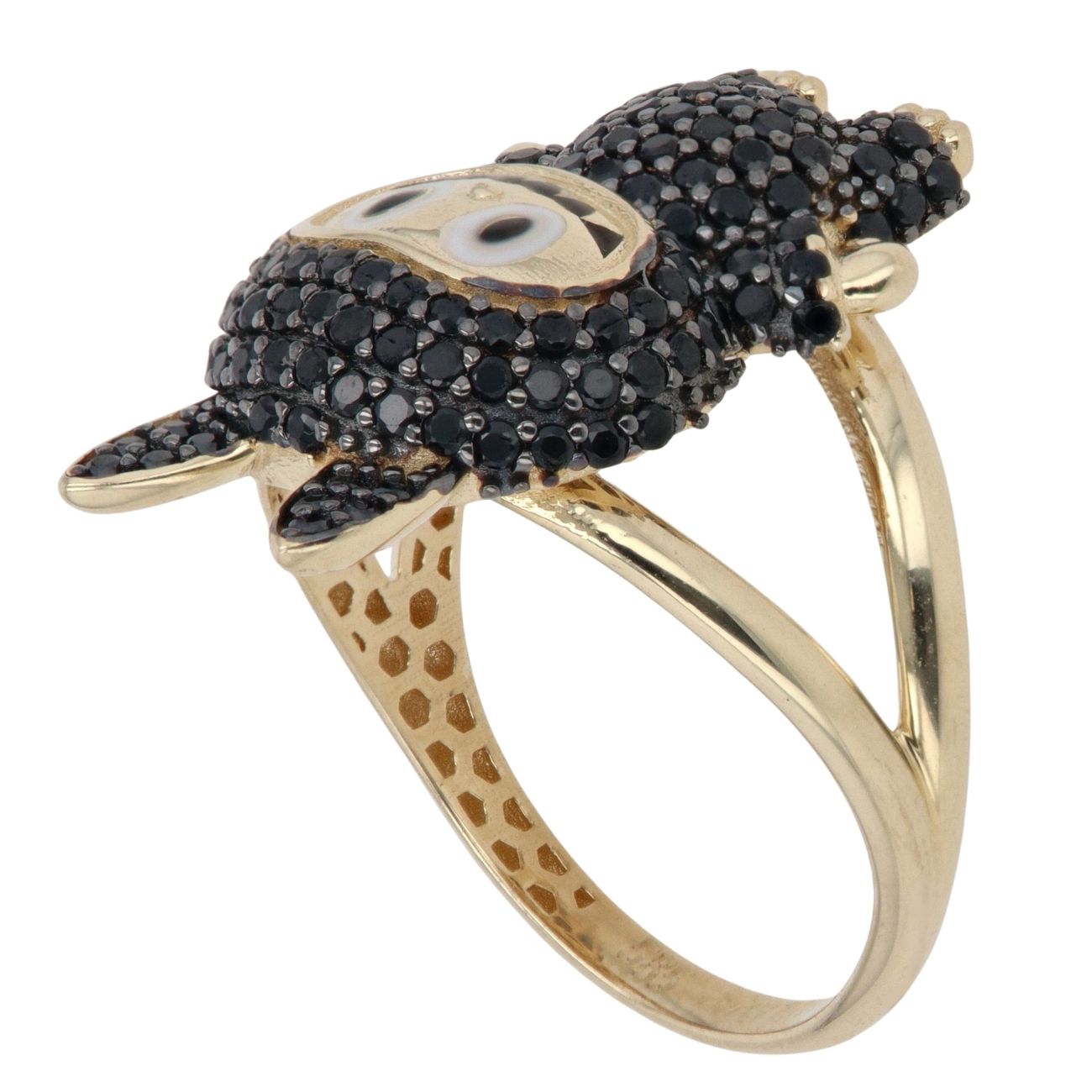 14ct Yellow Gold Black Gemstone Bunny Ring
