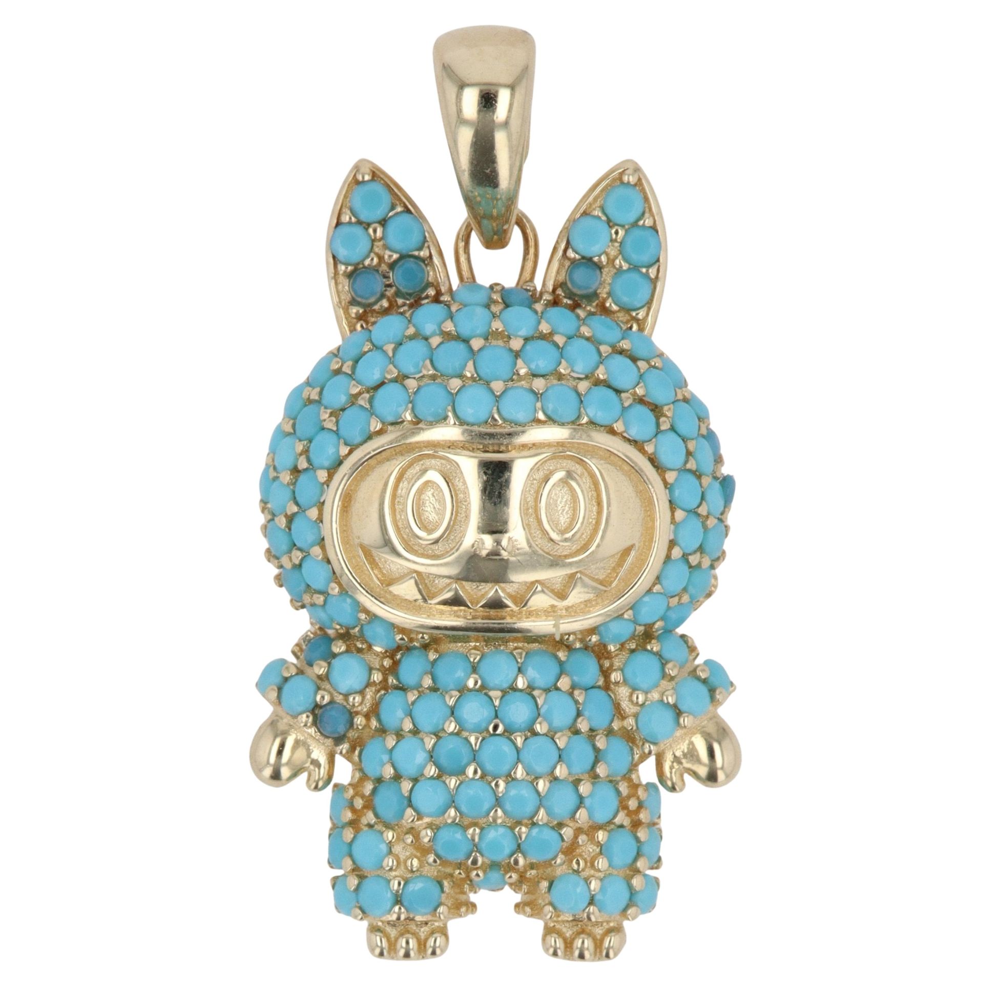 14ct Yellow Gold Blue Gemstone Bunny Pendant