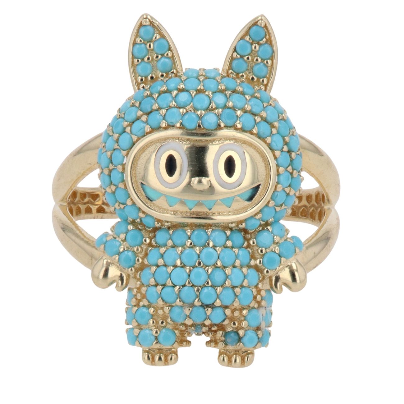 14ct Yellow Gold Blue Gemstone Bunny Ring