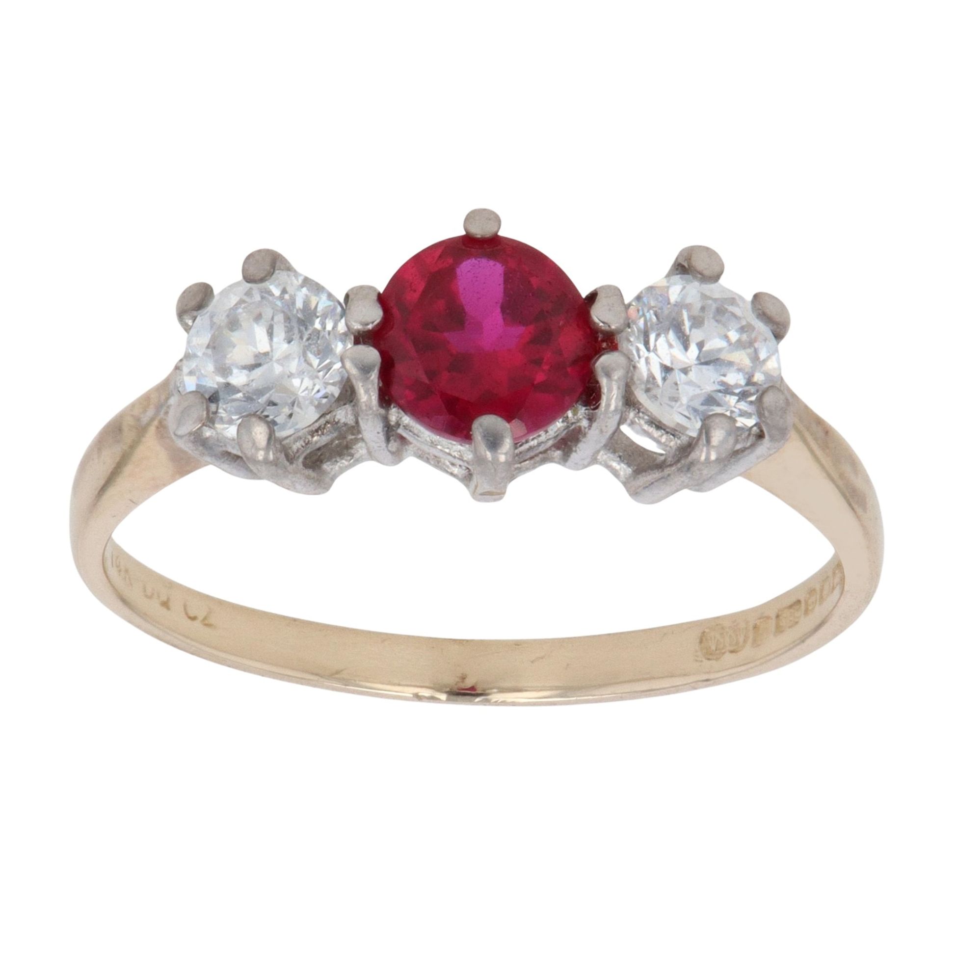 14ct Yellow Gold Created Ruby And Cubic Zirconia Ring