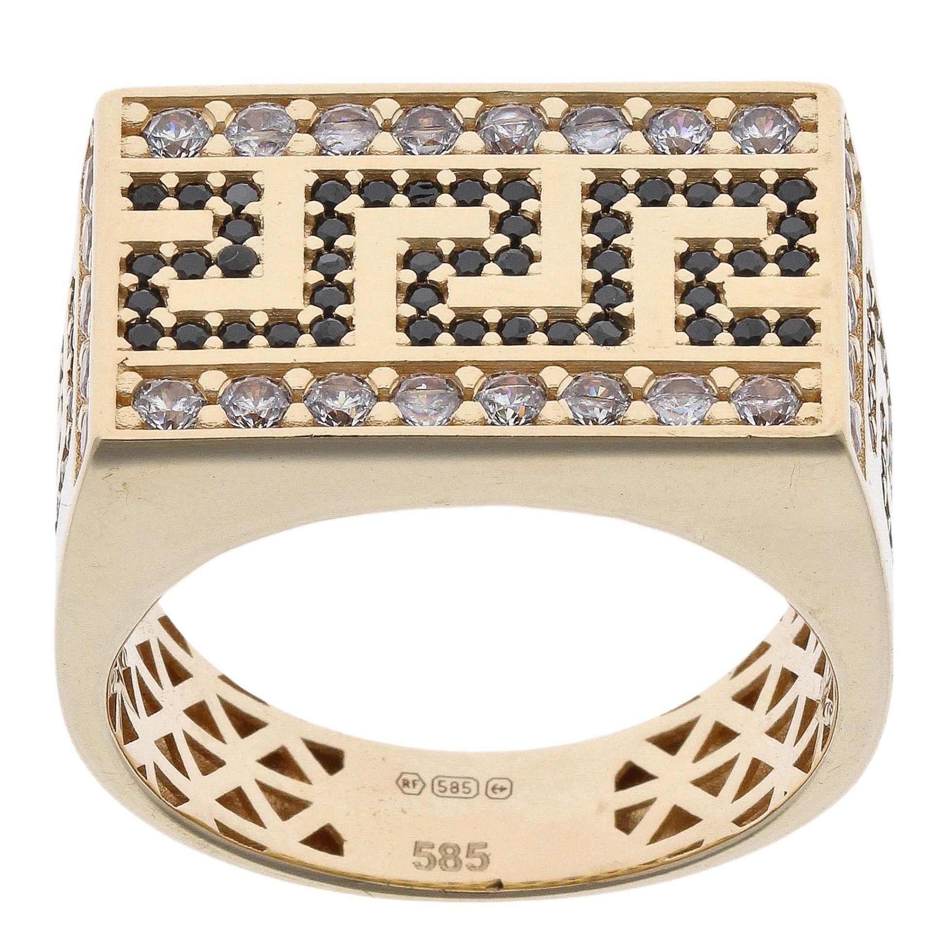 14ct Yellow Gold Cubic Zirconia And Black Gemstone Signet Ring