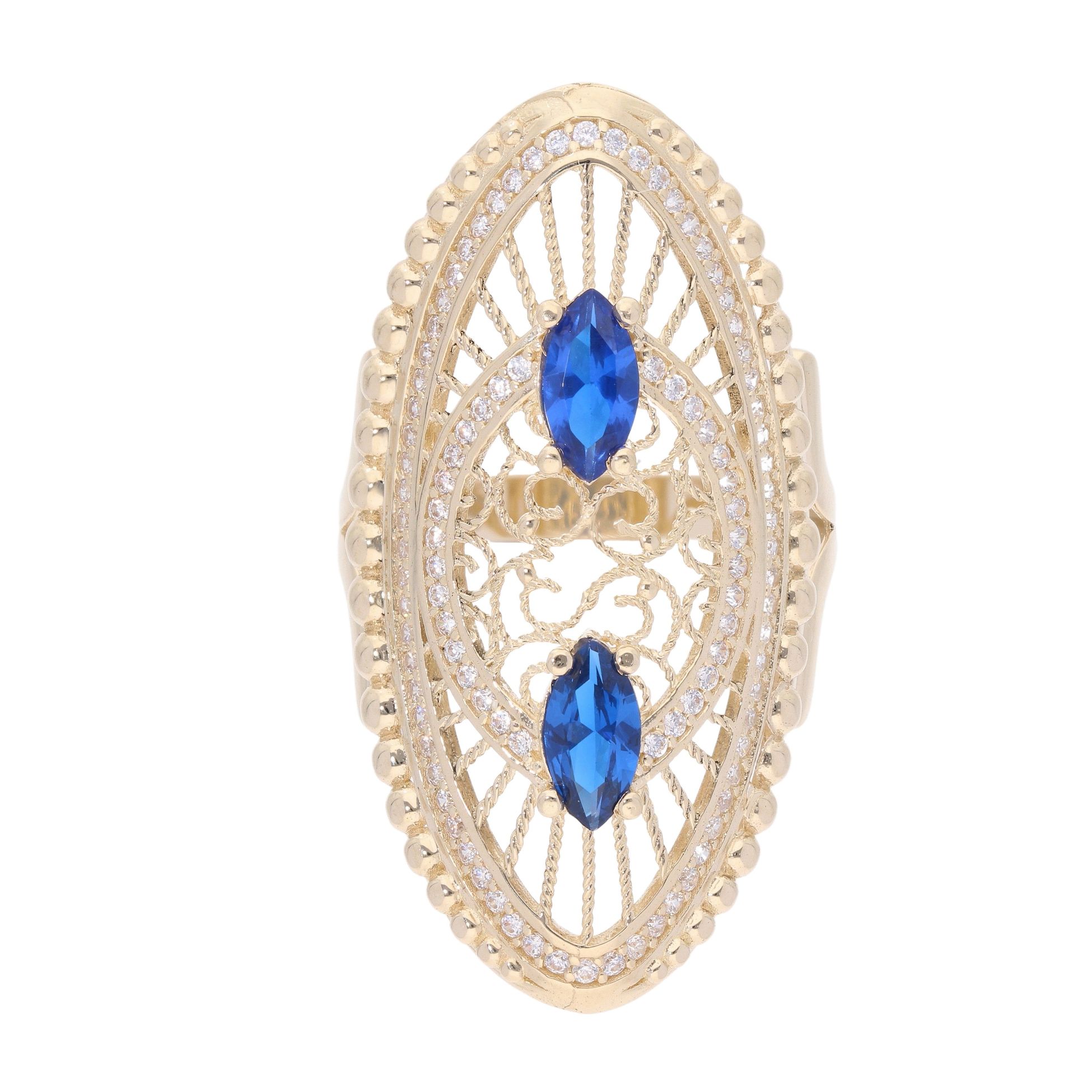 14ct Yellow Gold Cubic Zirconia and Blue Gem Ring