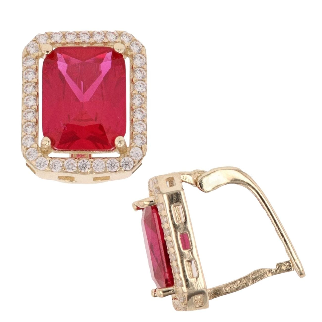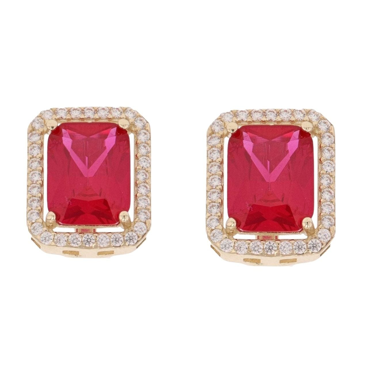 14ct Yellow Gold Cubic Zirconia And Red Gemstone Cluster Earrings