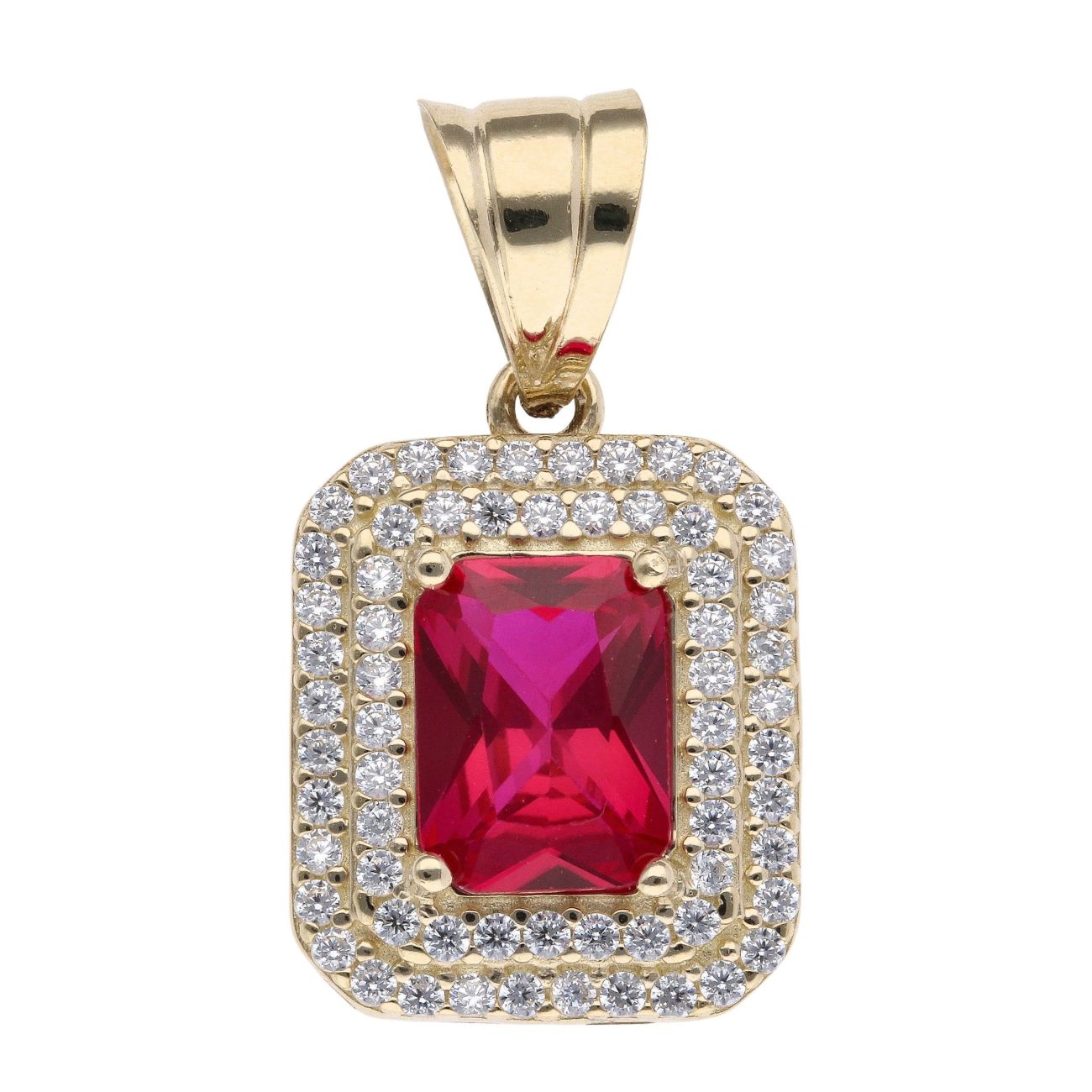 14ct Yellow Gold Cubic Zirconia And Red Gemstone Cluster Pendant