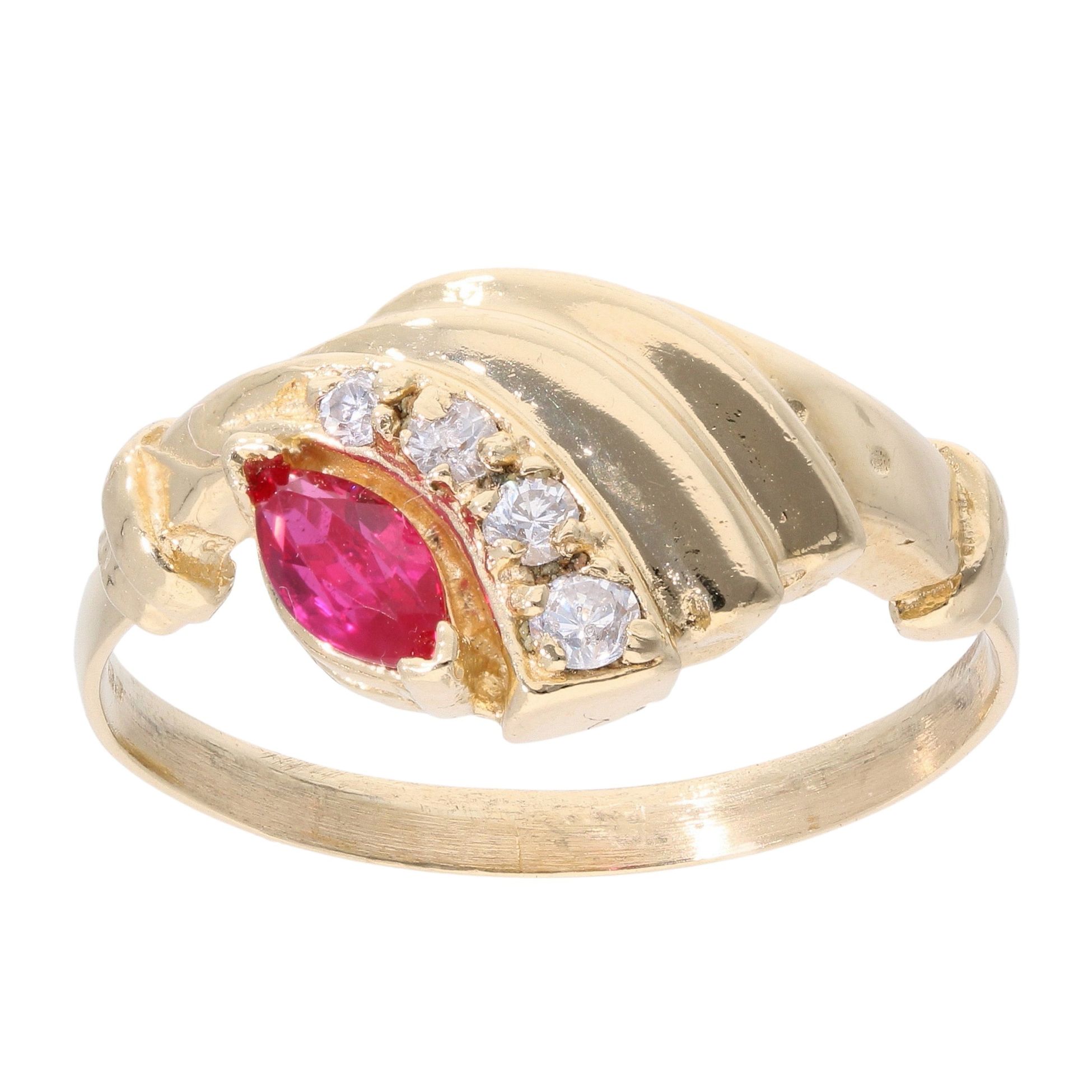 14ct Yellow Gold Cubic Zirconia And Red Gemstone Ring