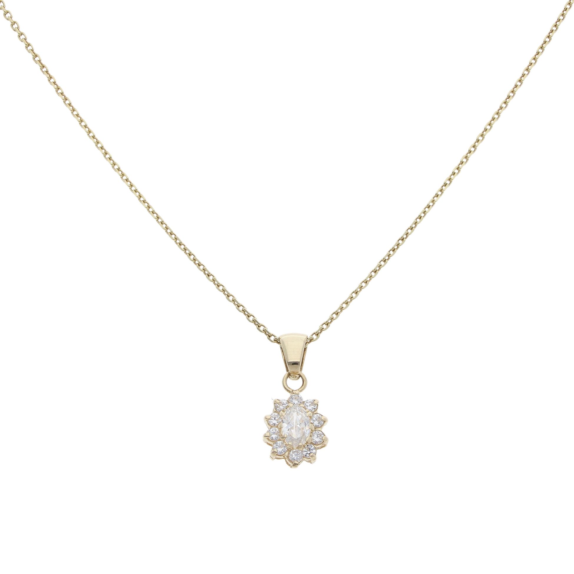 14ct Yellow Gold Cubic Zirconia Cluster Pendant And Chain 18"