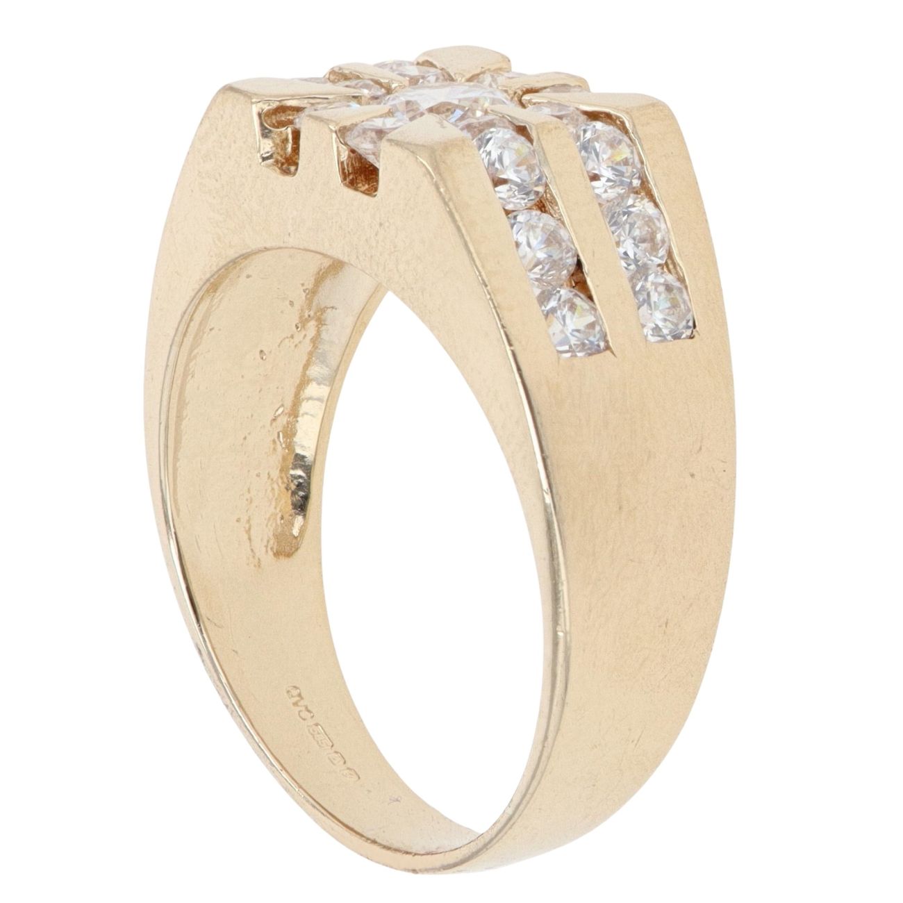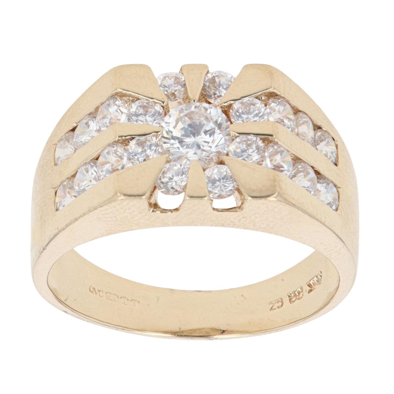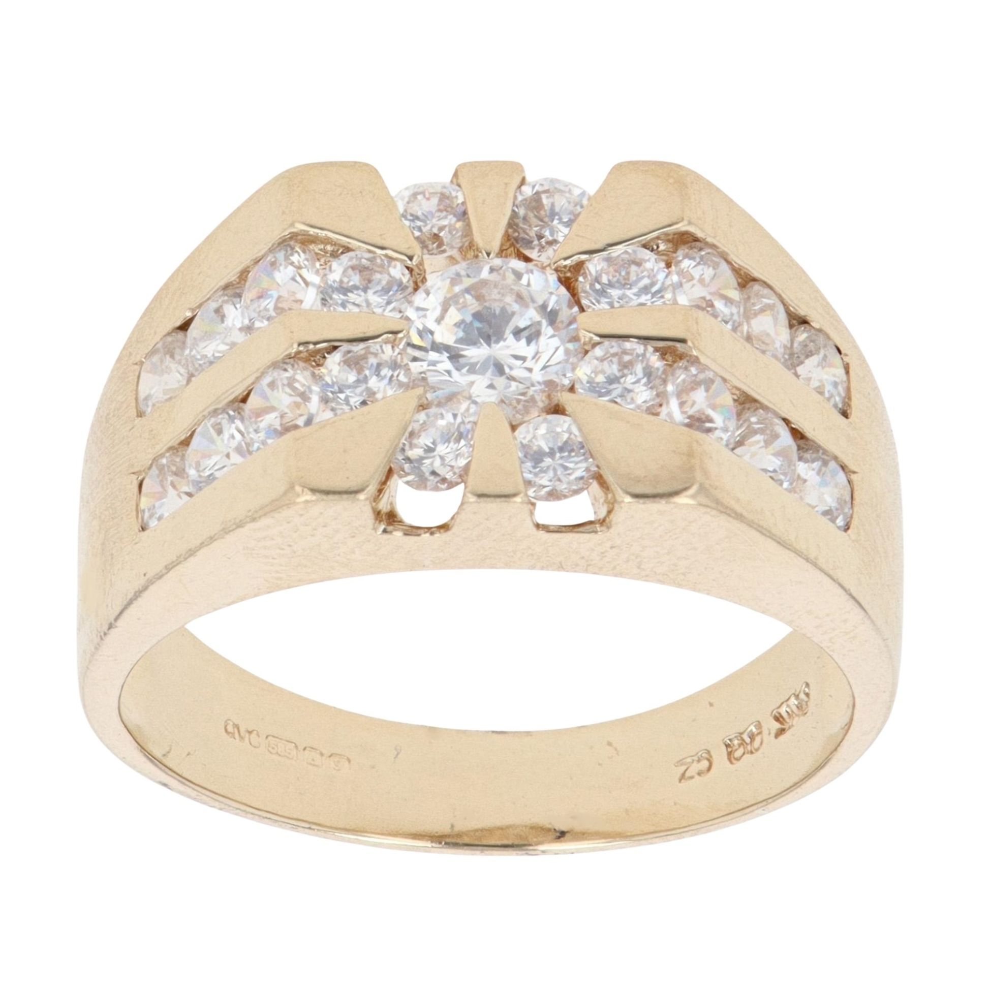 14ct Yellow Gold Cubic Zirconia Cluster Signet Ring
