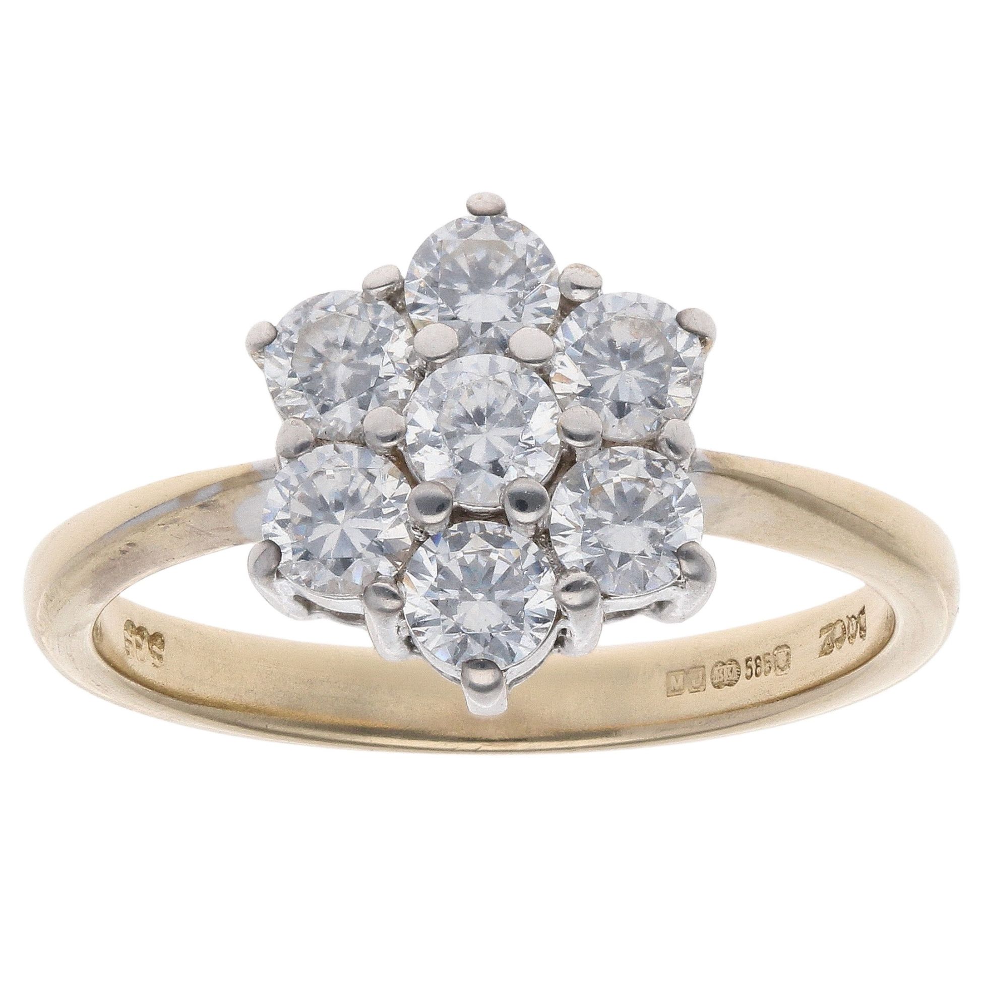 14ct Yellow Gold Cubic Zirconia Daisy Cluster Ring