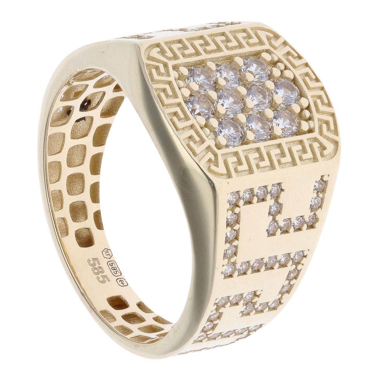 14ct Yellow Gold Cubic Zirconia Greek Key Signet Ring