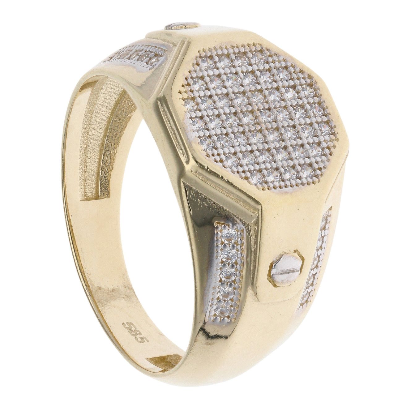 14ct Yellow Gold Cubic Zirconia Octagonal Signet Ring