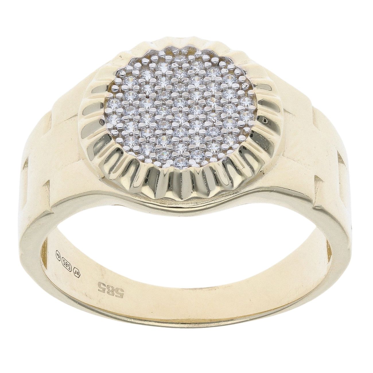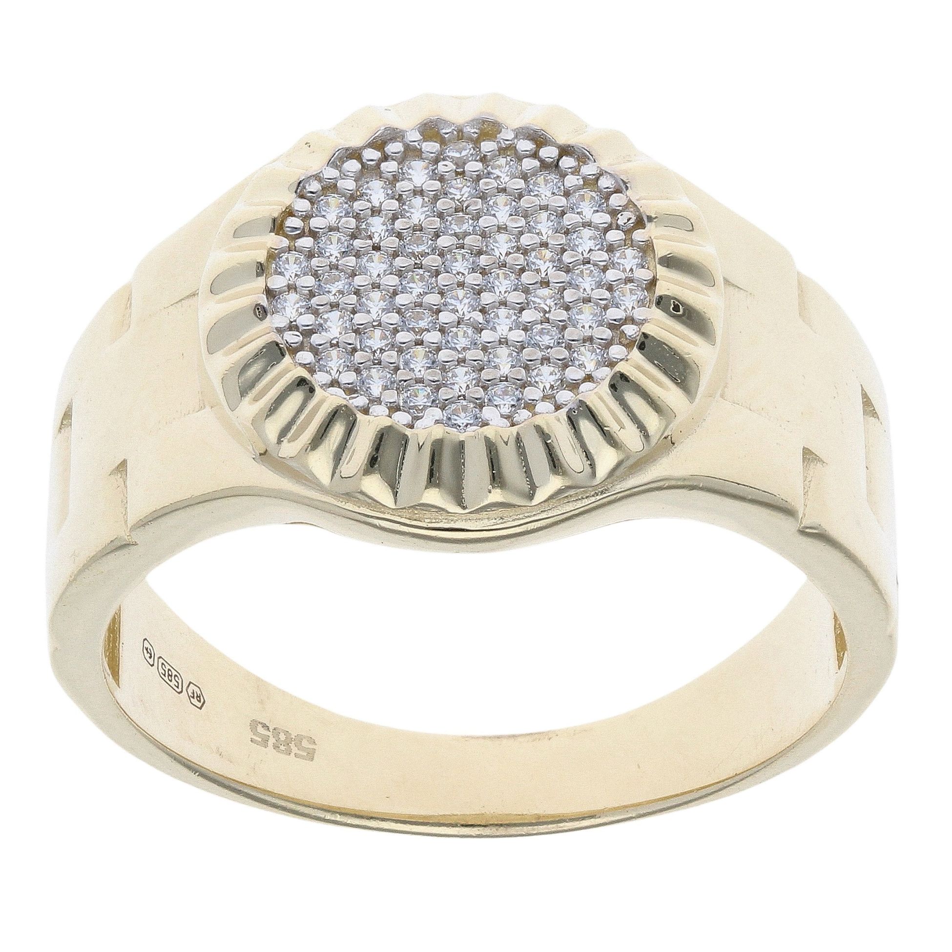 14ct Yellow Gold Cubic Zirconia Round Signet Ring