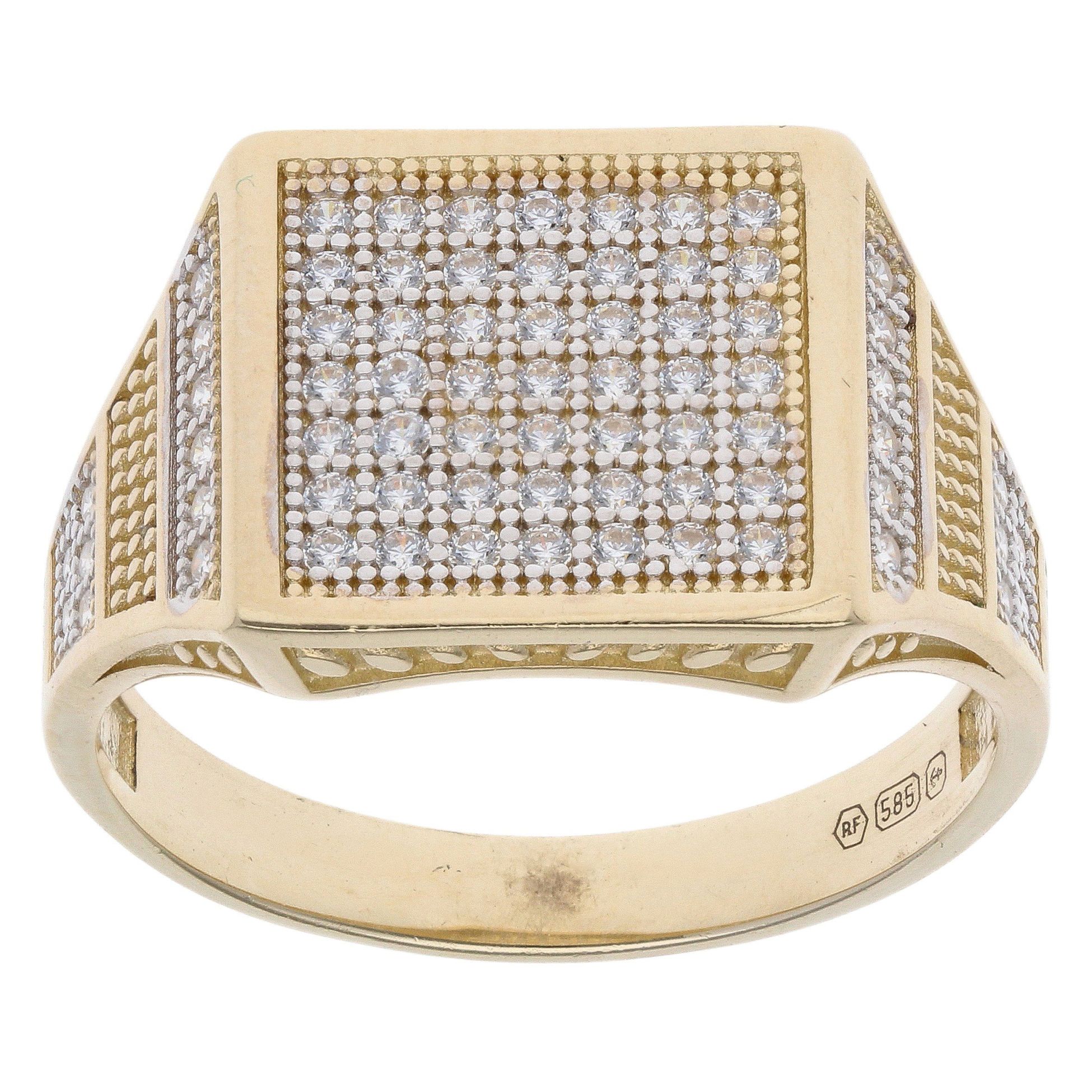 14ct Yellow Gold Cubic Zirconia Square Signet Ring