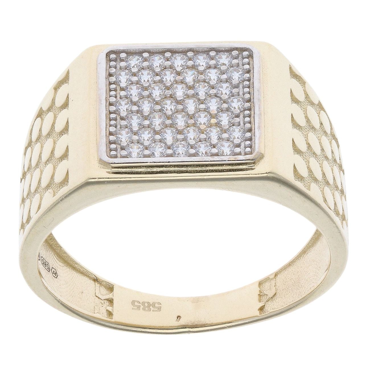 14ct Yellow Gold Cubic Zirconia Square Signet Ring