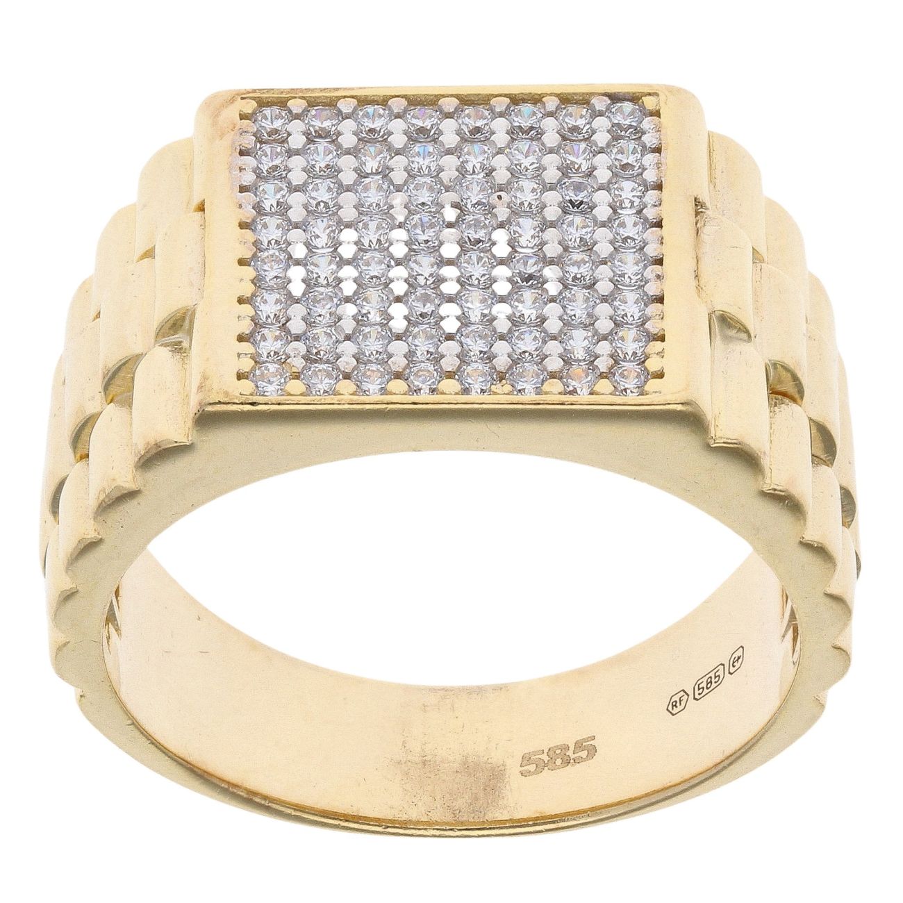 14ct Yellow Gold Cubic Zirconia Square Watch Style Signet Ring
