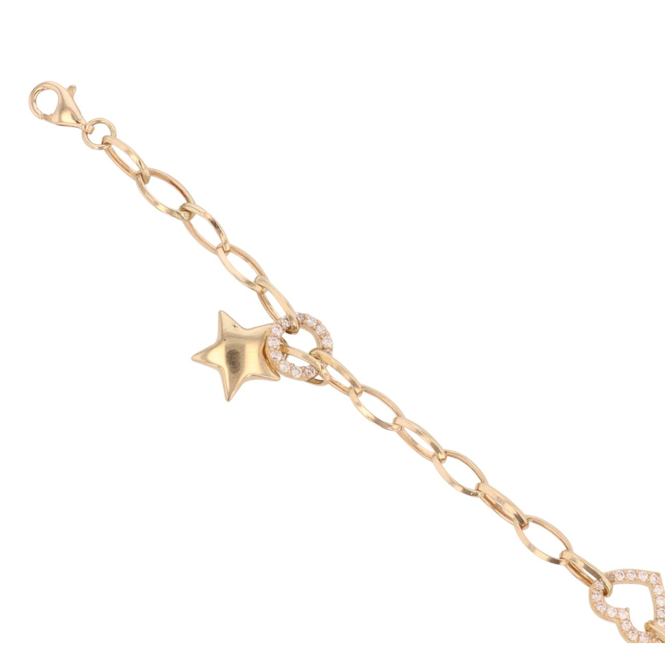 14ct Yellow Gold Cubic Zirconia Star and Hearts Bracelet 7.5"