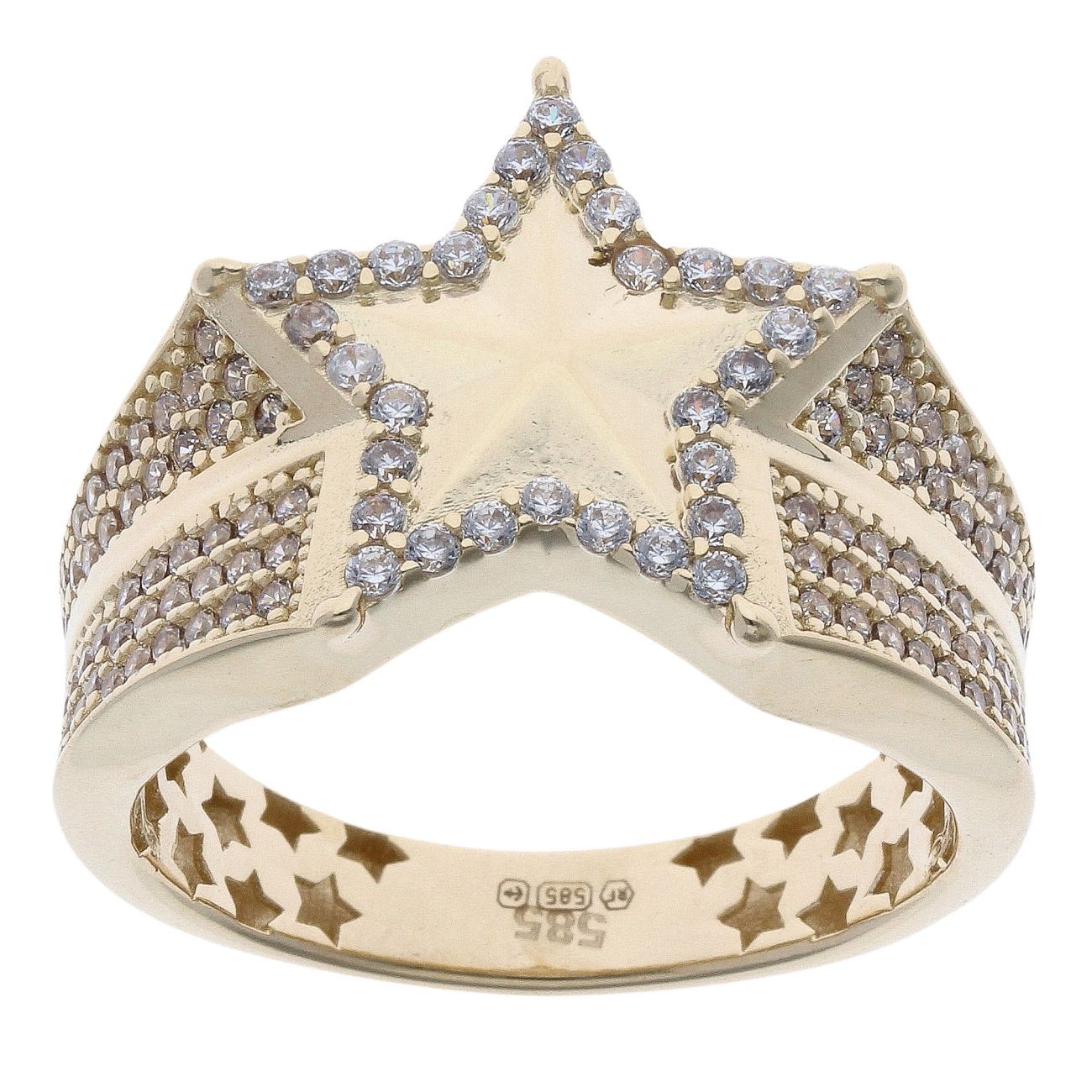 14ct Yellow Gold Cubic Zirconia Star Signet Ring