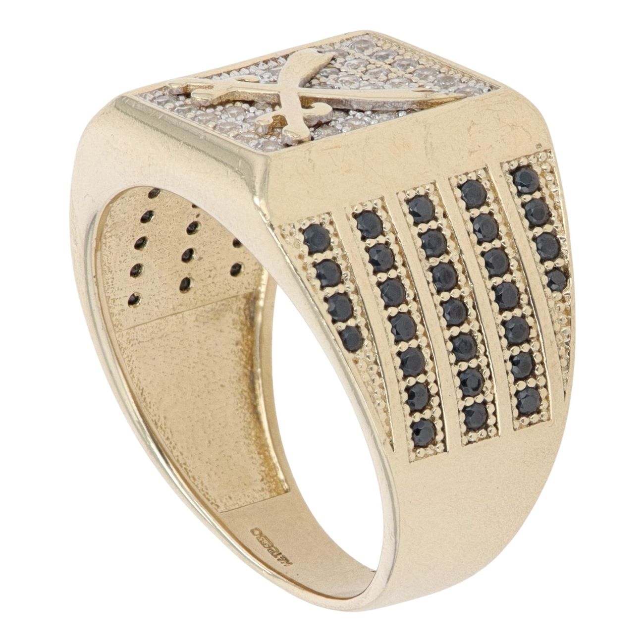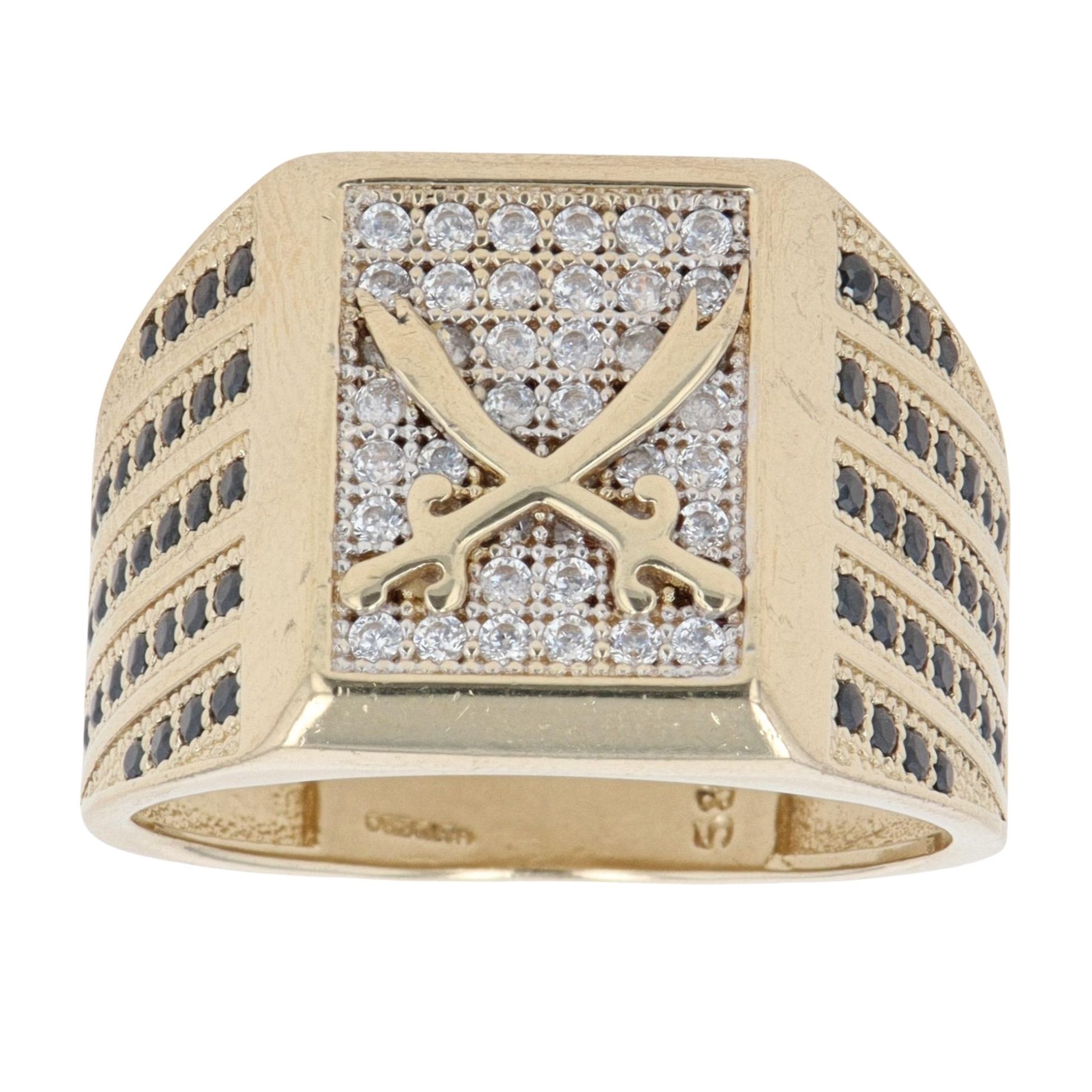 14ct Yellow Gold Cubic Zirconia Sword Signet Ring