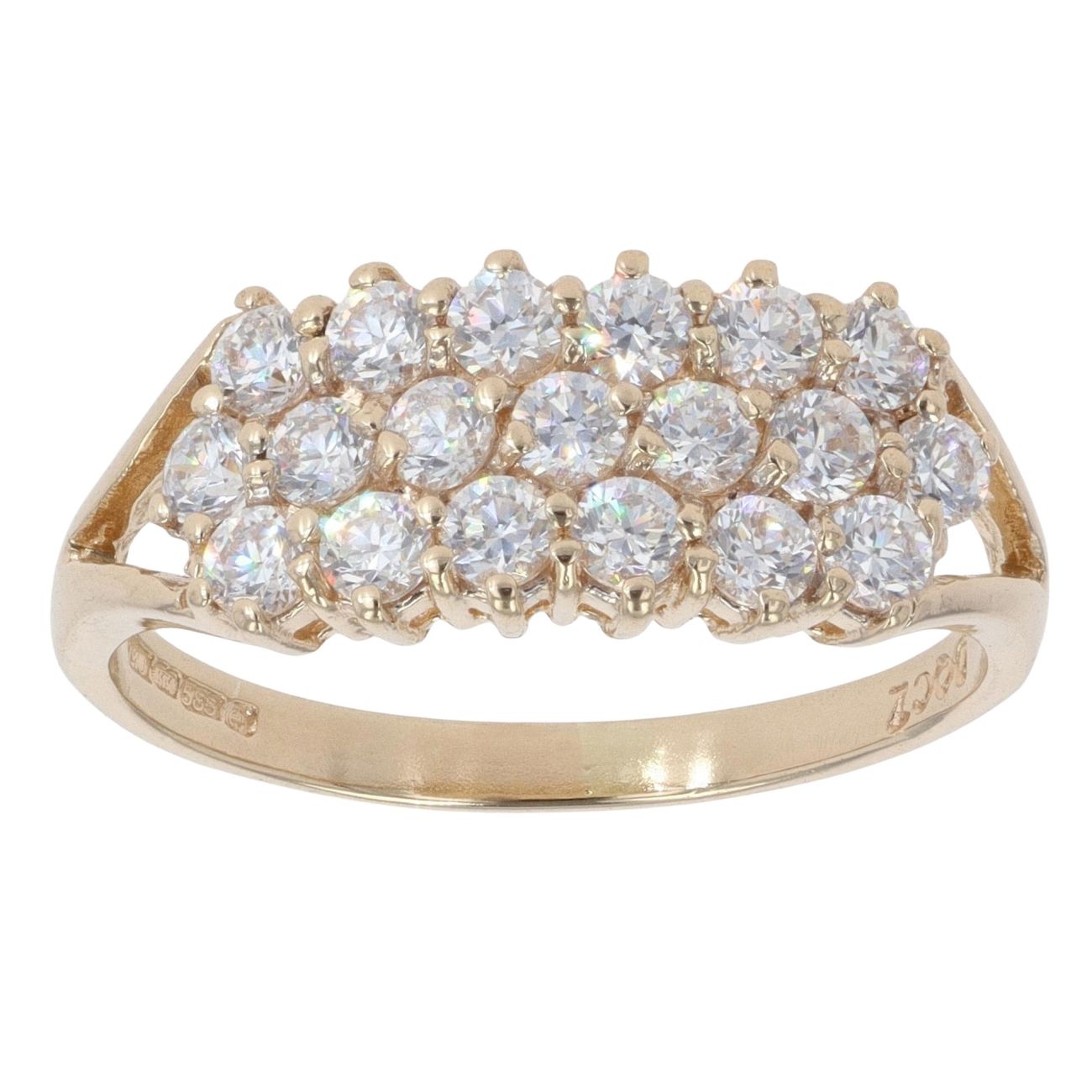 14ct Yellow Gold Cubic Zirconia Three Row Ring